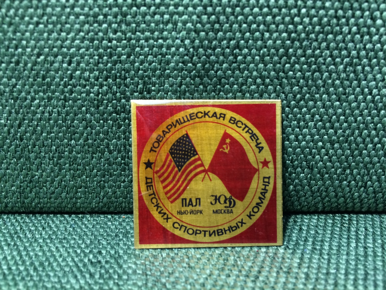 Значок "Товарищеская встреча детских спортивных команд Америка СССР" тяжелый