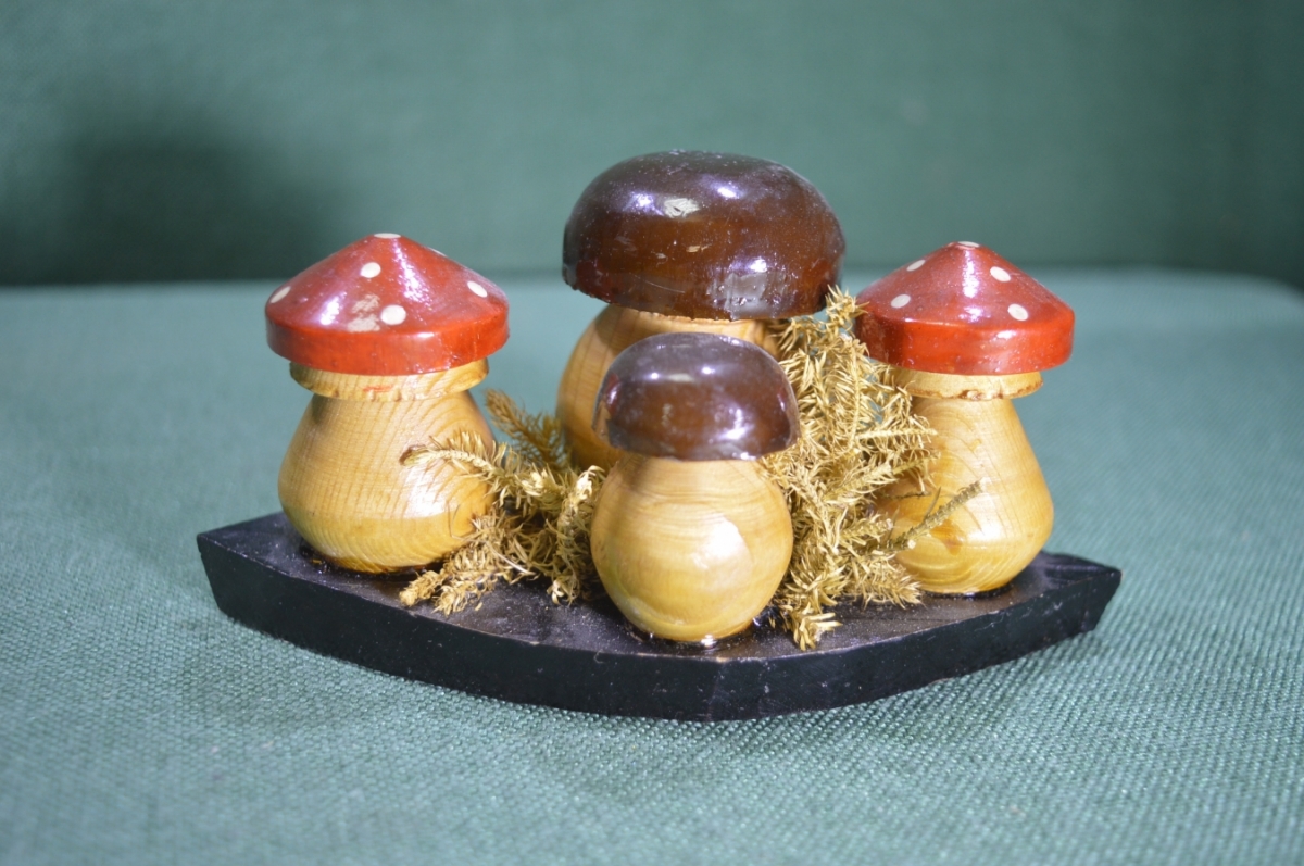 Настольная деревянная композиция "Грибы грибница". Роспись. Дерево. СССР.