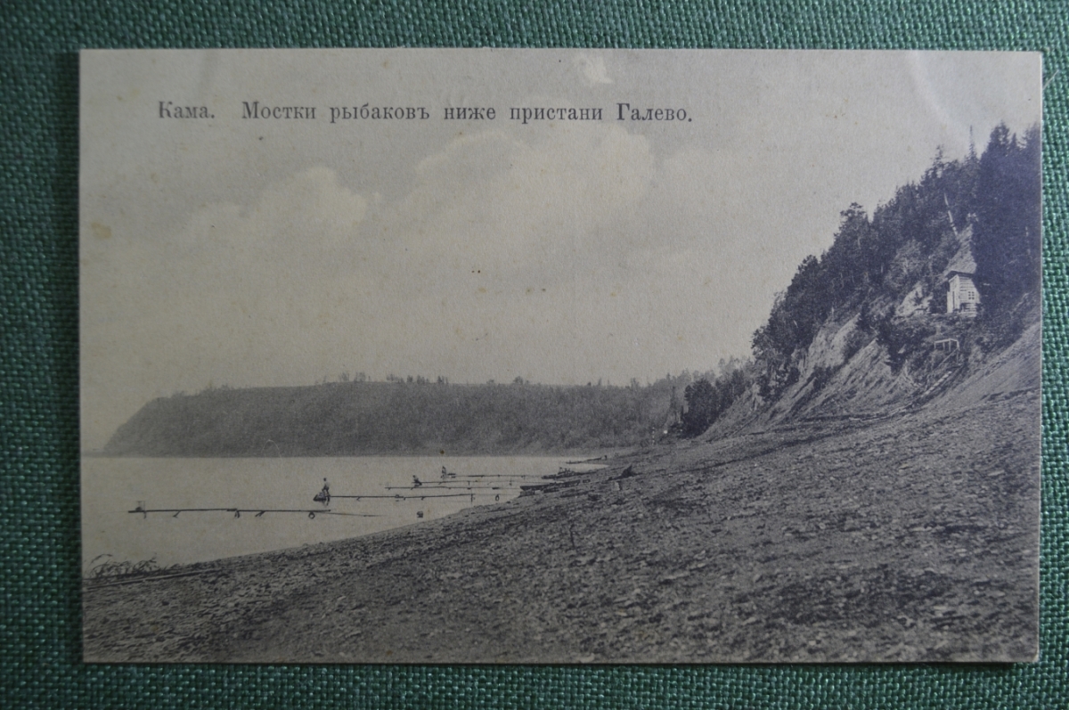 Открытка старинная "Кама. Мостки рыбаков ниже пристани Галево". Российская Империя.