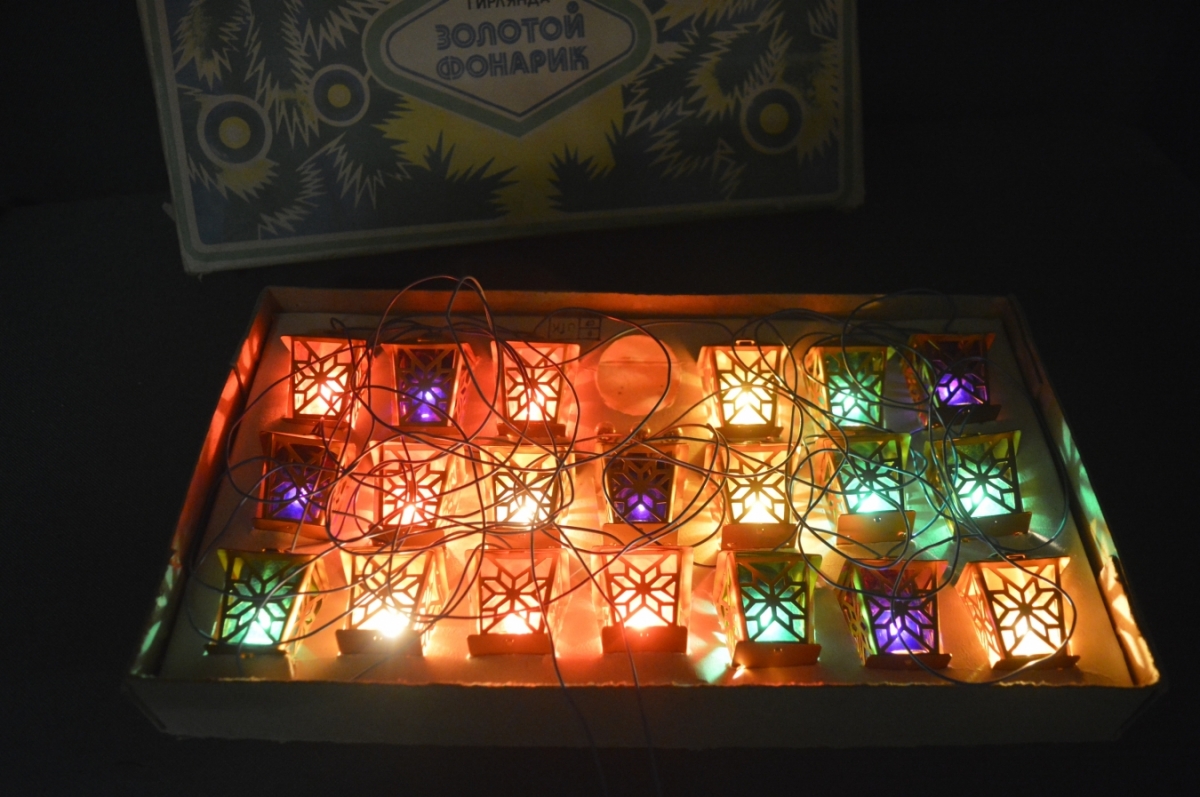 Гирлянда елочная электрическая "Золотой Фонарик", электрогирлянда новогодняя. СССР. Рабочая.