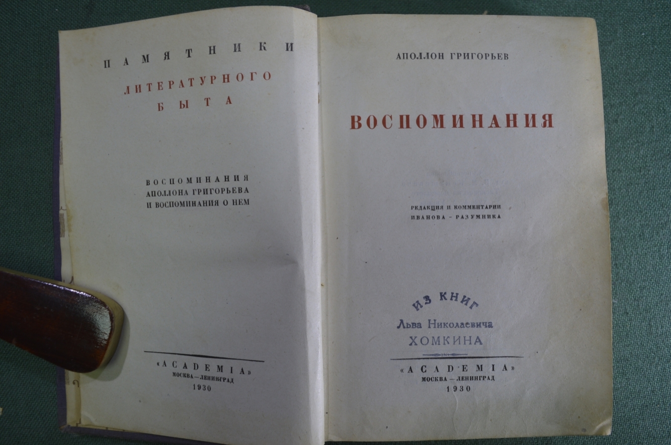 Книга "Воспоминания. Аполлон Григорьев". Академия, 1930 год.
