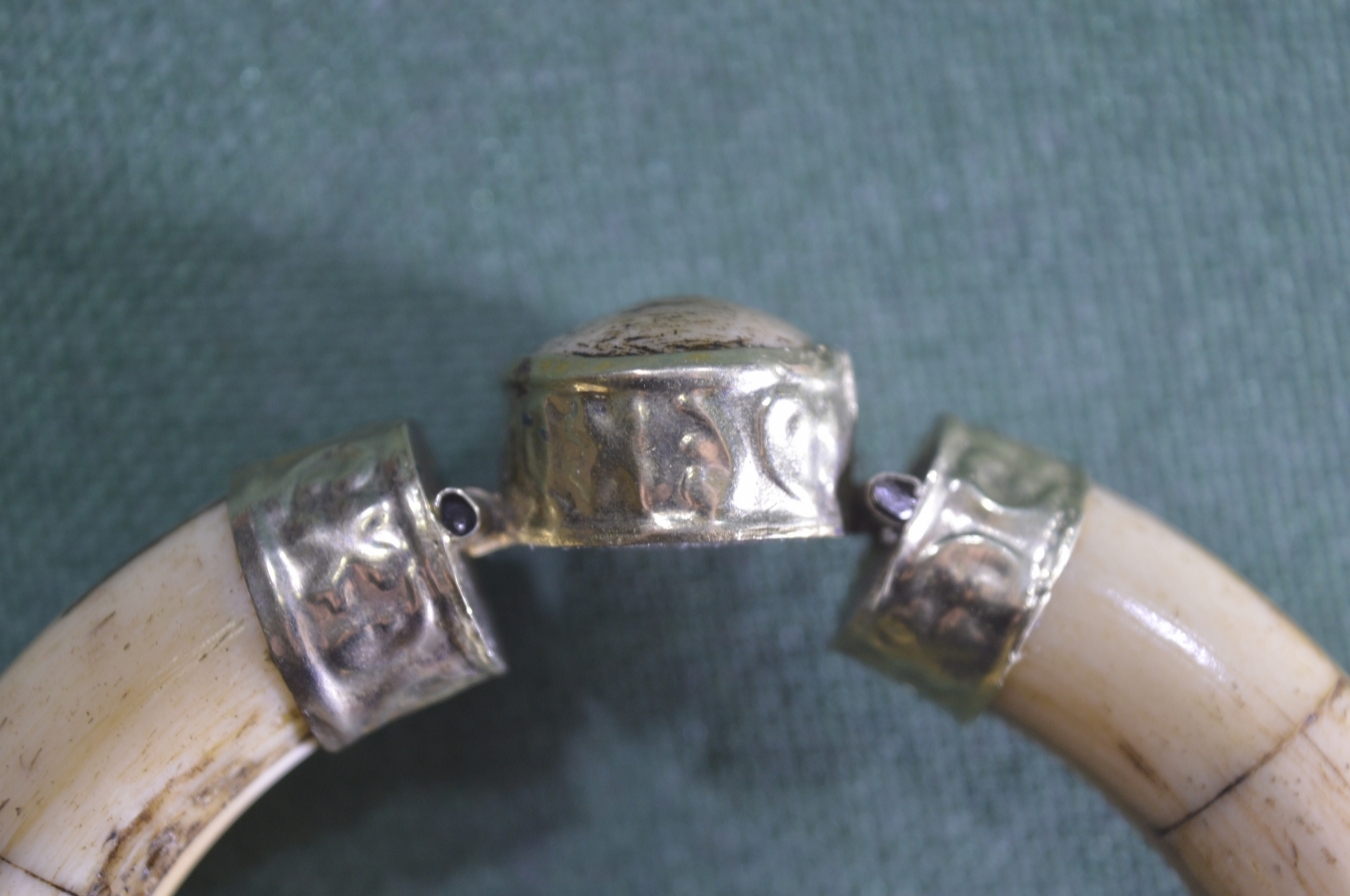 Браслет костяной. Старая Индия. Натуральная кость. Латунь. Камень Агат.