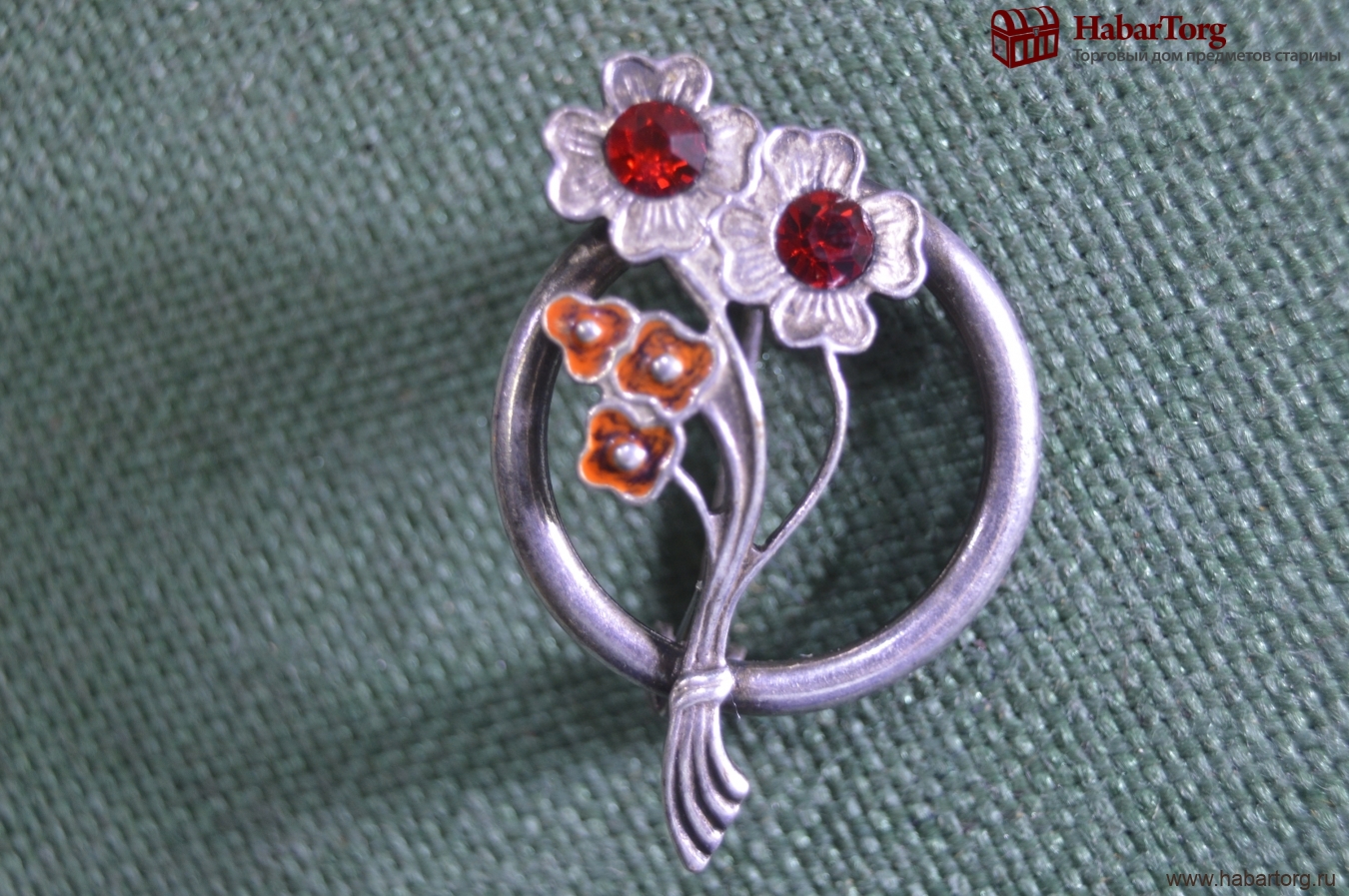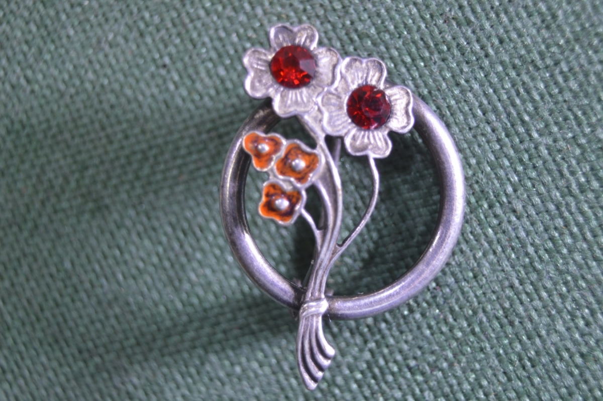 Брошь брошка "Букет цветов". Мельхиор. Клеймо. СССР.