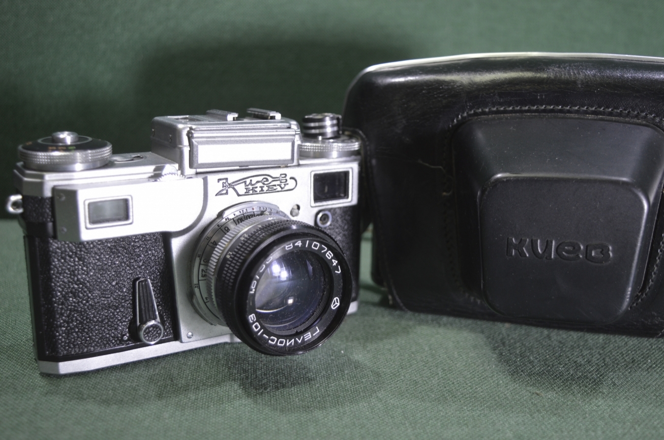 Фотоаппарат "Киев" с объективом Гелиос-103. Кофр. Чехол. СССР. #U