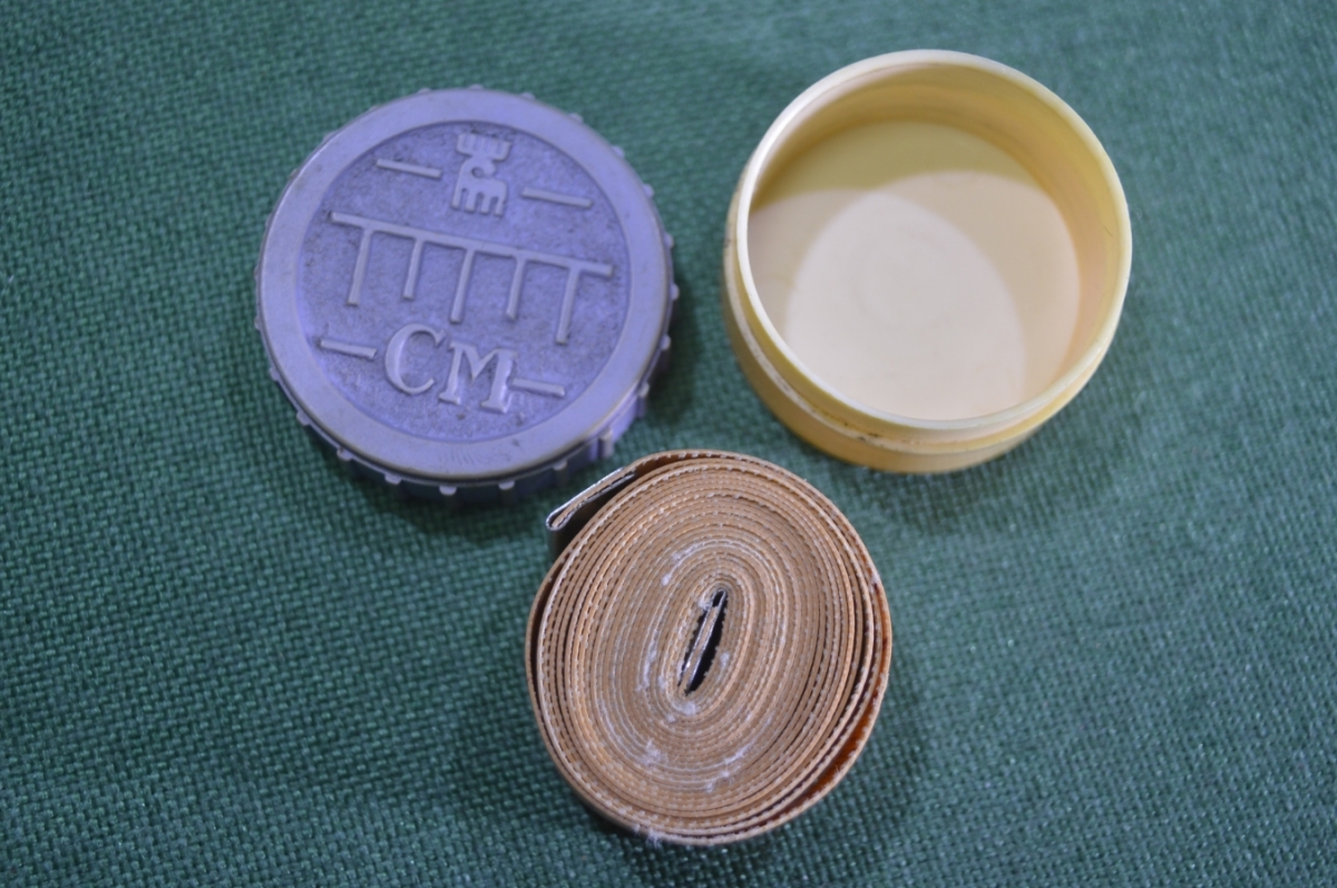 Сантиметр гибкий в футляре. Колкий пластик. СССР.