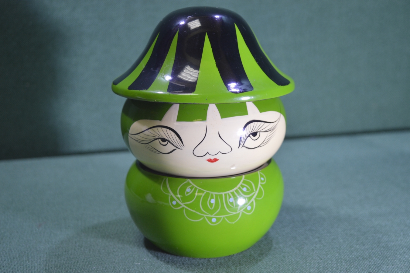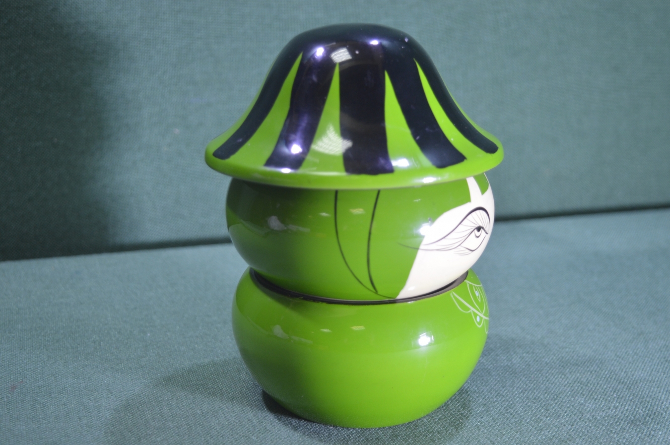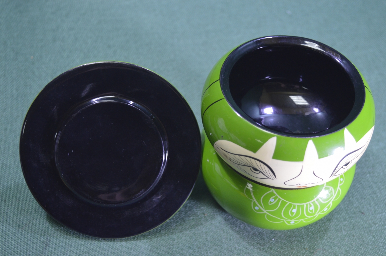 Шкатулка двухуровневая "Лицо". Лак. Папье-маше. Винтаж. Вьетнам.