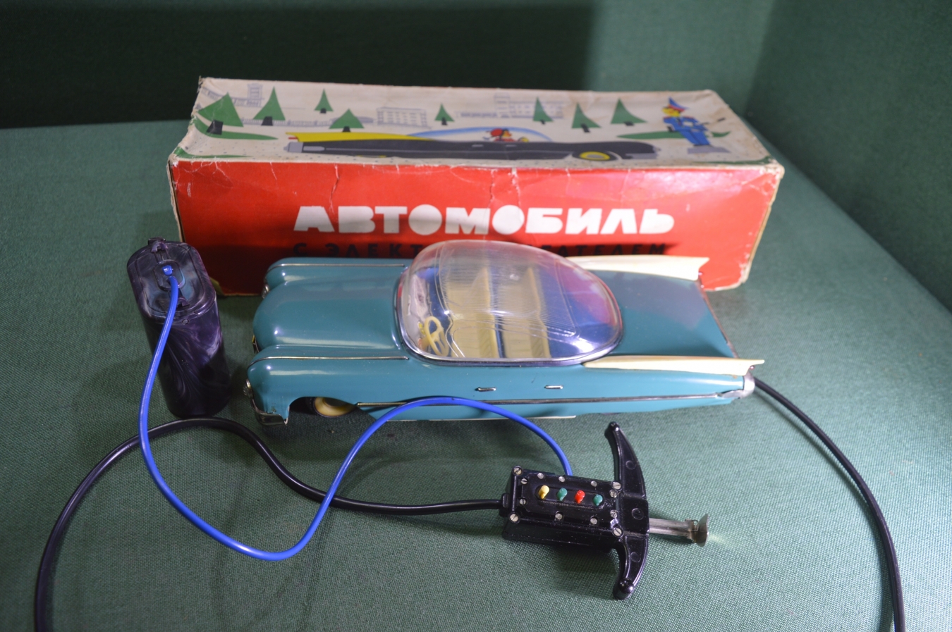 Машинка игрушка "Автомобиль с электродвигателем Кадиллак". Коробка. СССР.