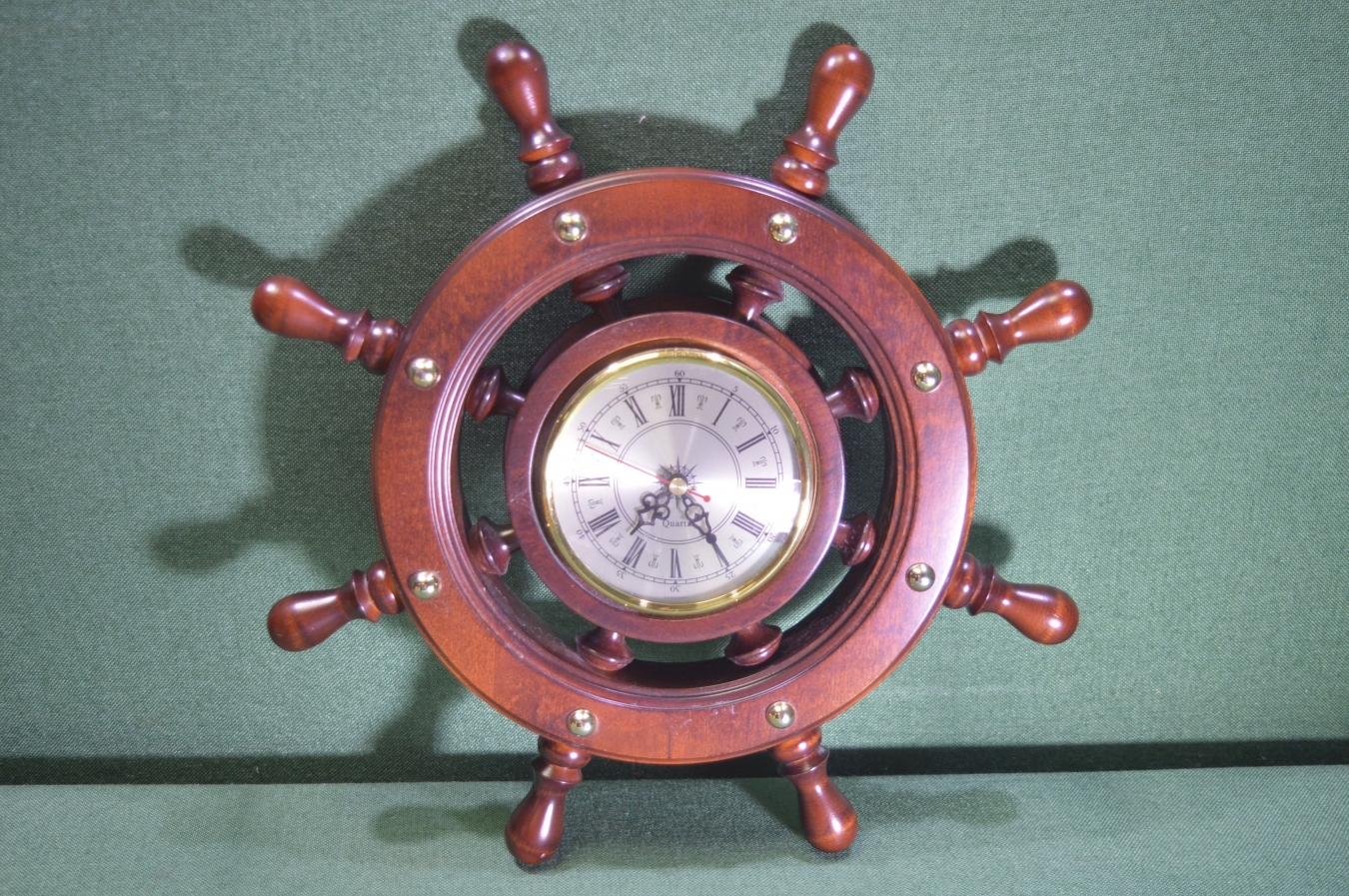 Часы настенные кварцевые "Штурвал". Дерево. Морская тема. Германия.