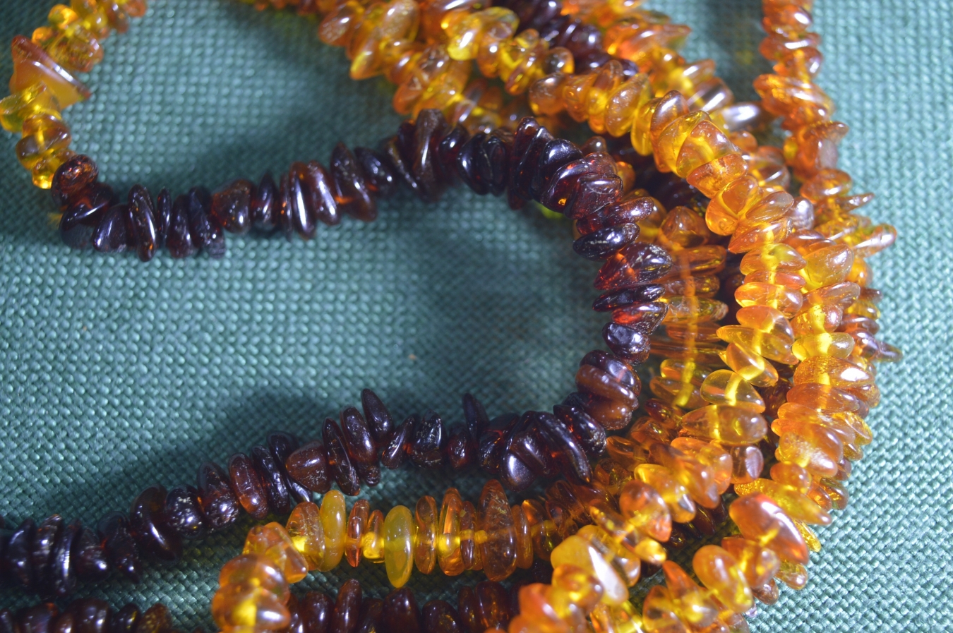 Бусы янтарные, двуцветный янтарь. Общая длина 180 см.