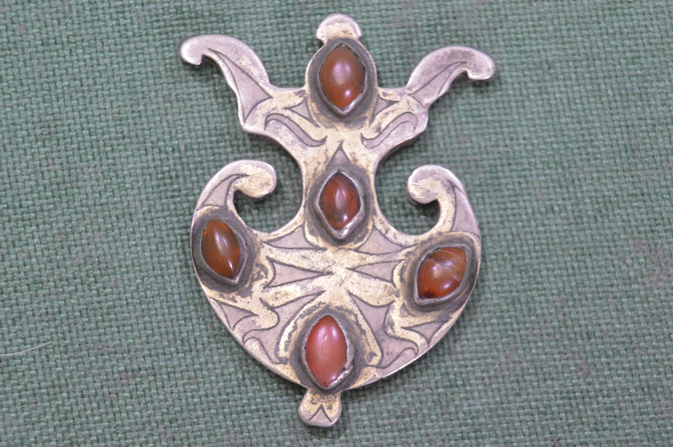 Подвеска старинная медальон. Серебро 800 проба. Сердолик. Туркменистан. 19 век.