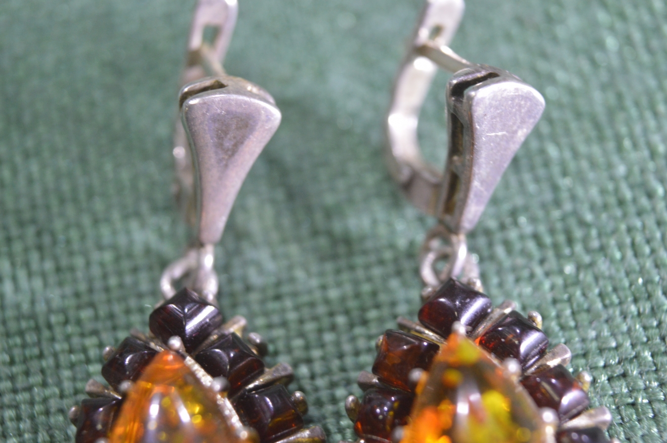 Серьги серебряные. Вставки янтарь? Серебро 925 проба. ЛФВД.