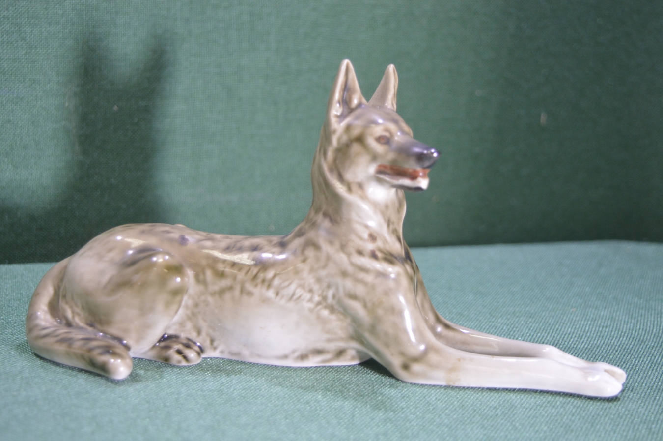 Фарфоровая статуэтка "Немецкая овчарка собака". Фарфор. ЛФЗ, СССР. #U