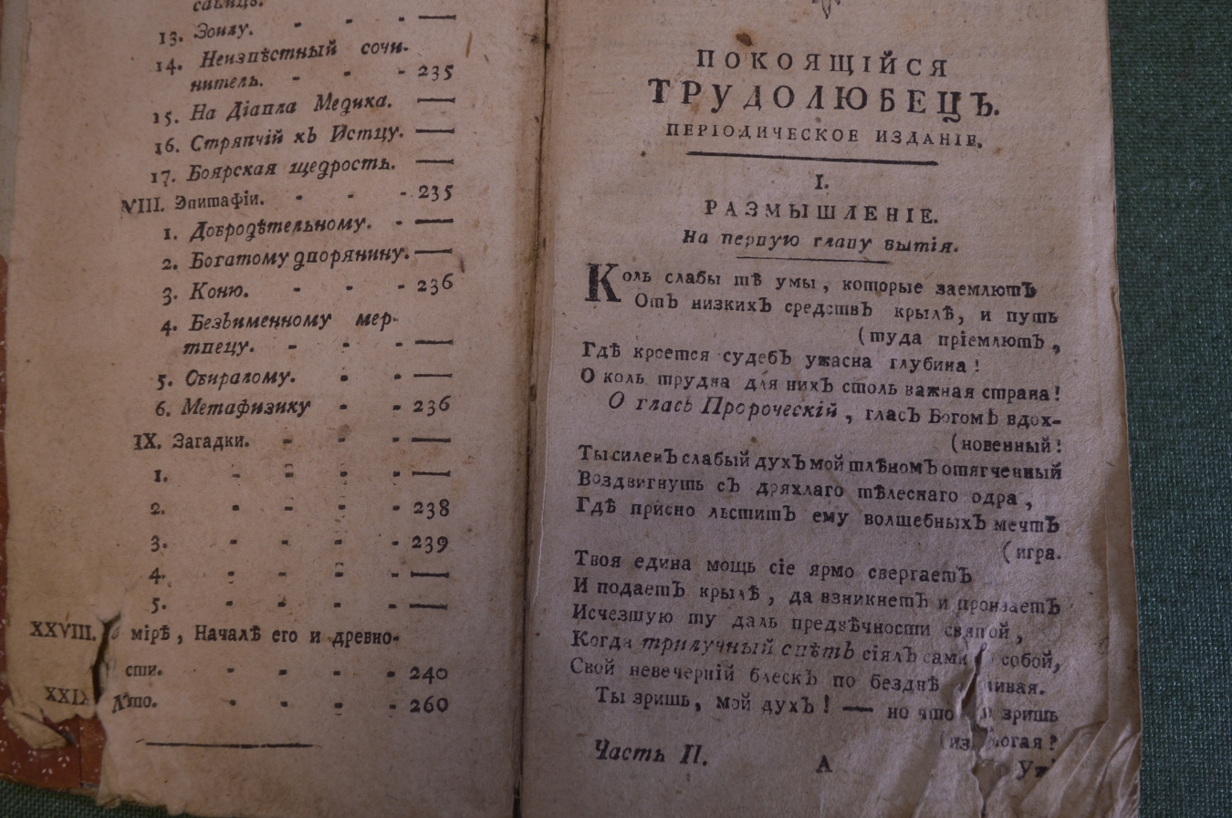 Покоящийся трудолюбец, периодическое издание, служащее продолжением Вечерней зари. Заключающее в себе богословские, философические, нравоучительные, исторические и всякого рода как важные, так и забавные материи, к пользе и удовольствию любопытных читателей, состоящие из подлинных сочинений на российском языке и переводов с лучших иностранных писателей в стихах и прозе.