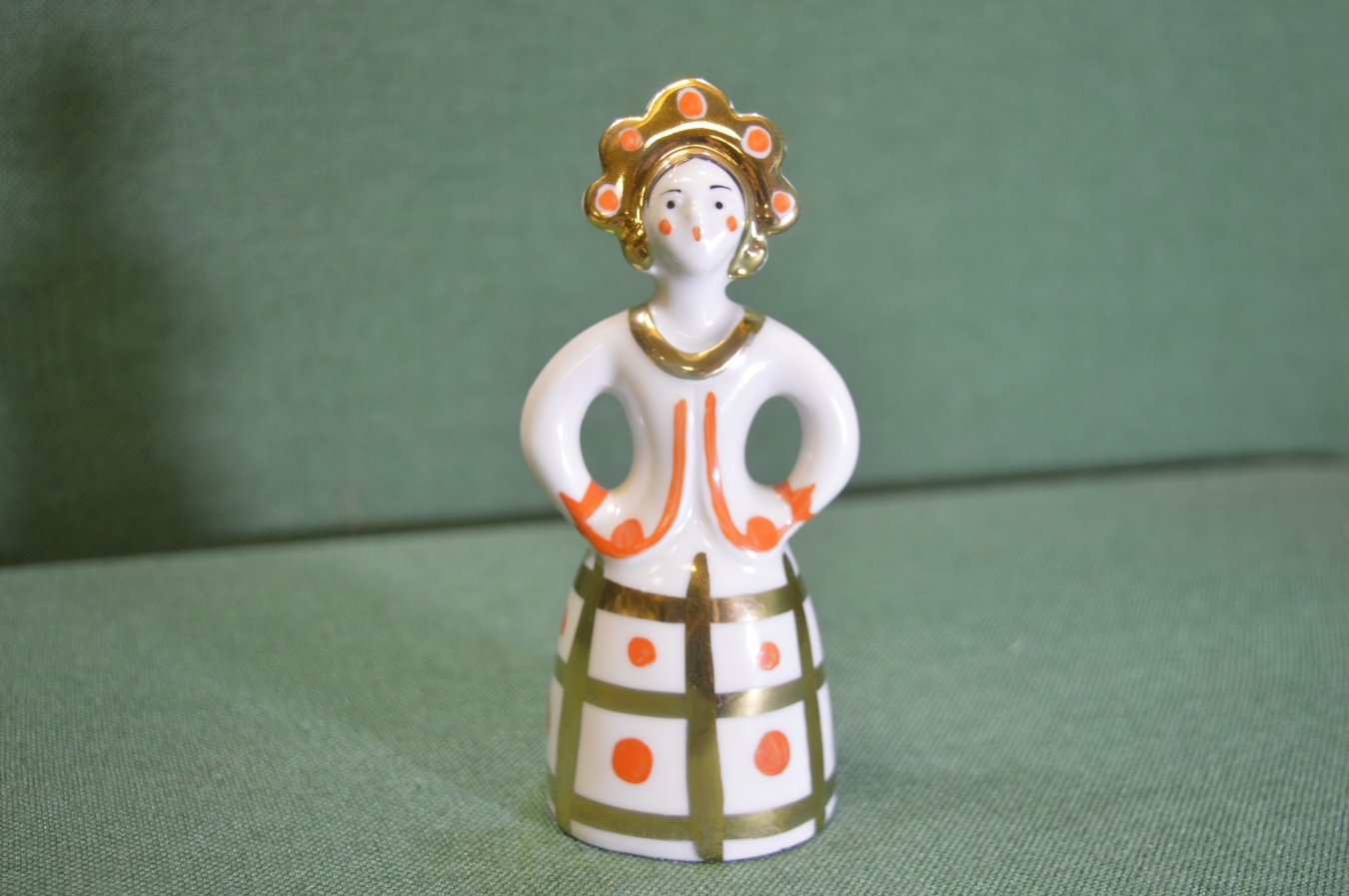 Фарфоровая статуэтка "Девушка кокошнике". Фарфор, золочение. Дулево. СССР.