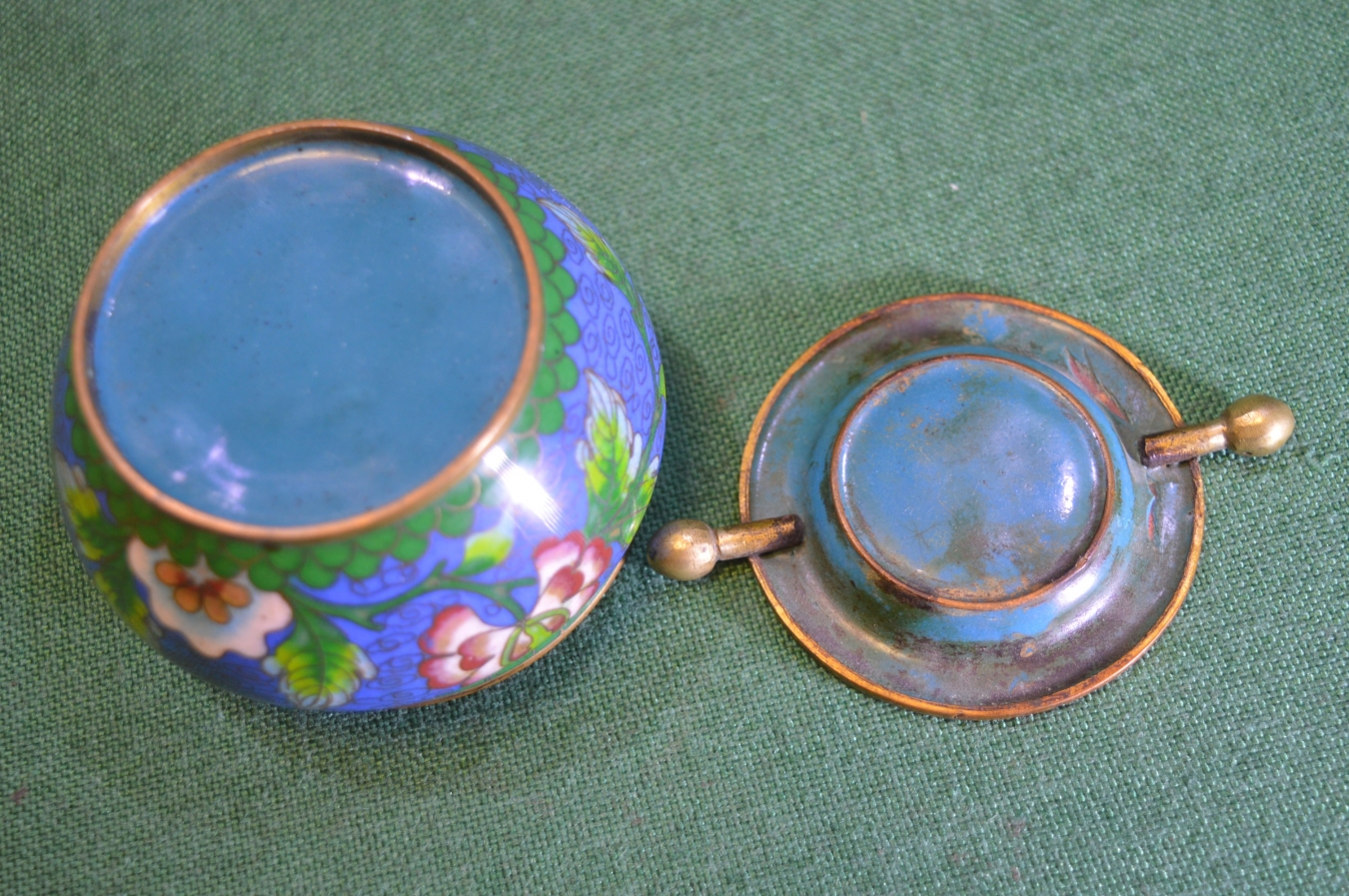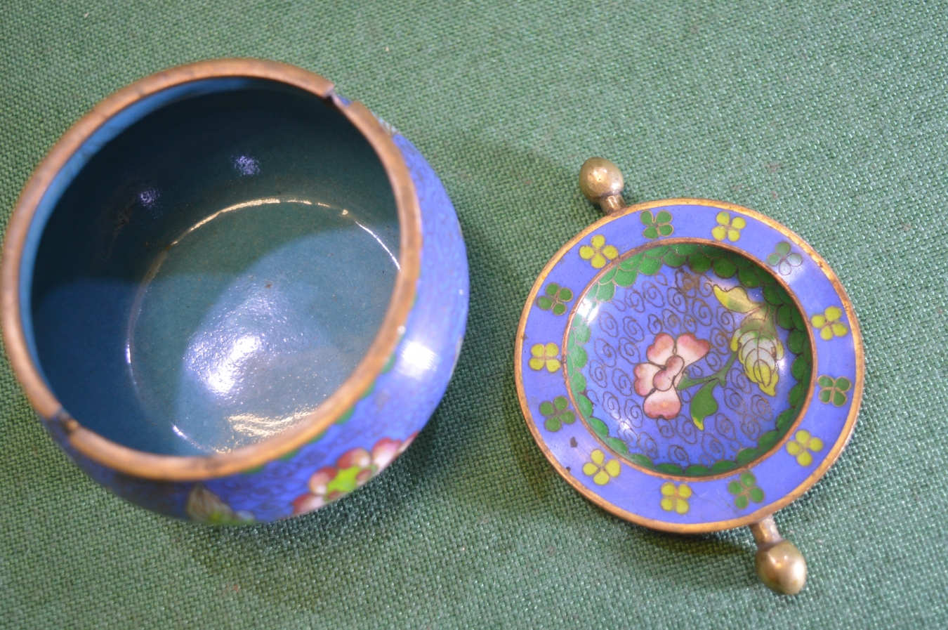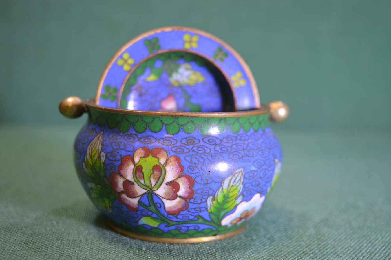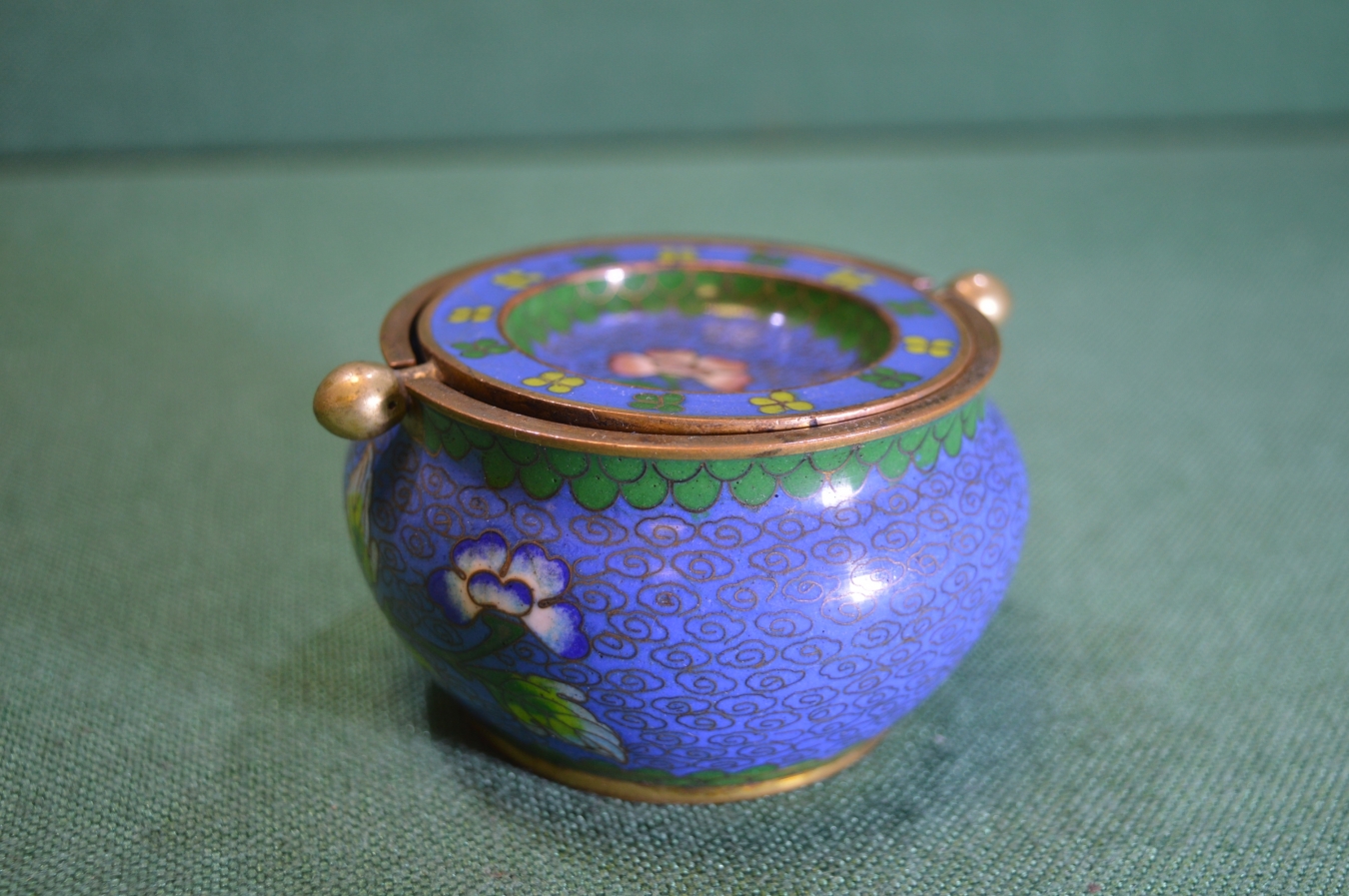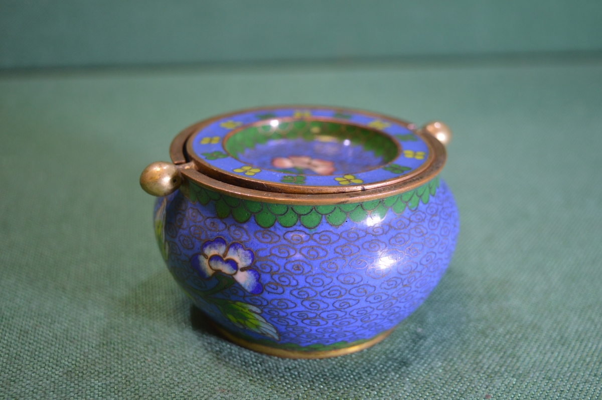 Пепельница с вращающейся крышкой. Клуазоне, перегородчатая эмаль, Китай.