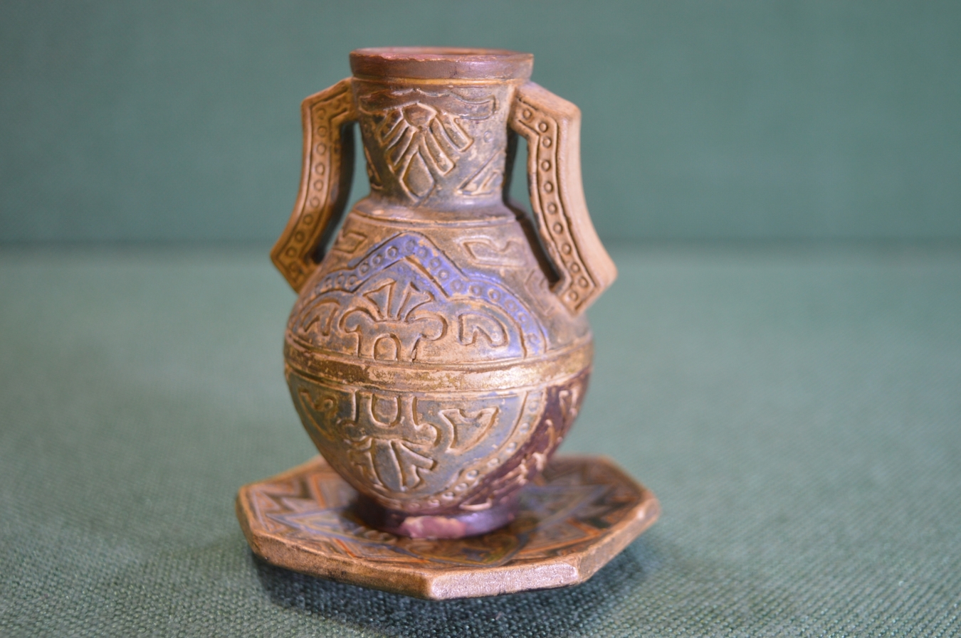 Кувшинчик на блюдце. Керамика, терракота. Клеймо JM, Johann Maresch. Австрия.