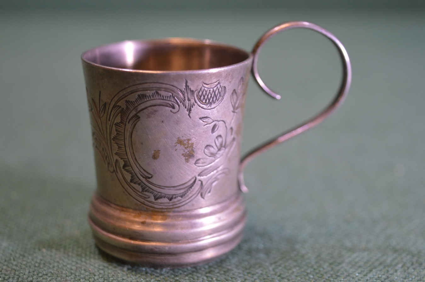 Кружка чарка с ручкой старинная. Серебро 84 проба. Царская Россия.