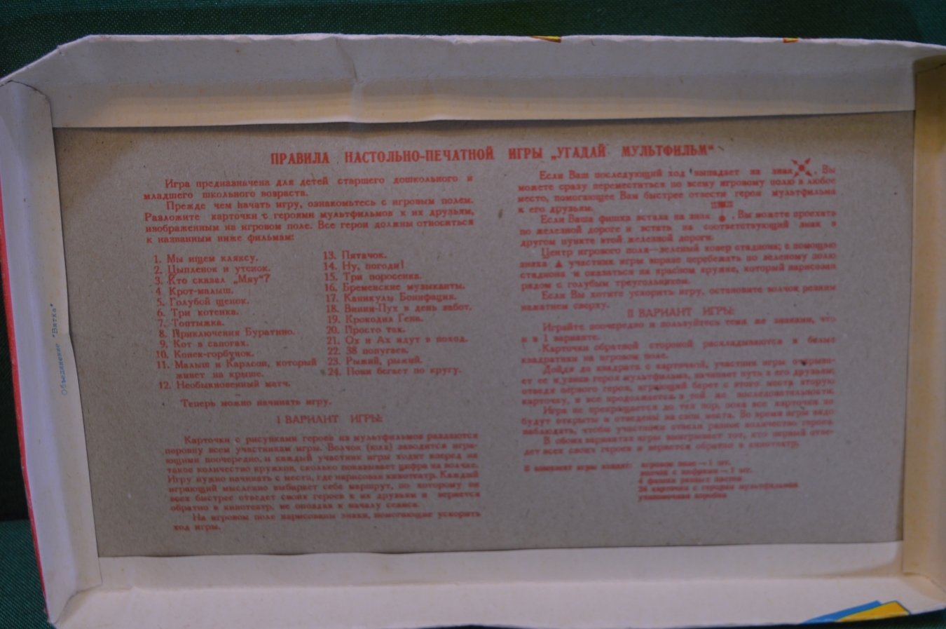 Игра настольная "Угадай Мультфильм". Коробка. СССР.