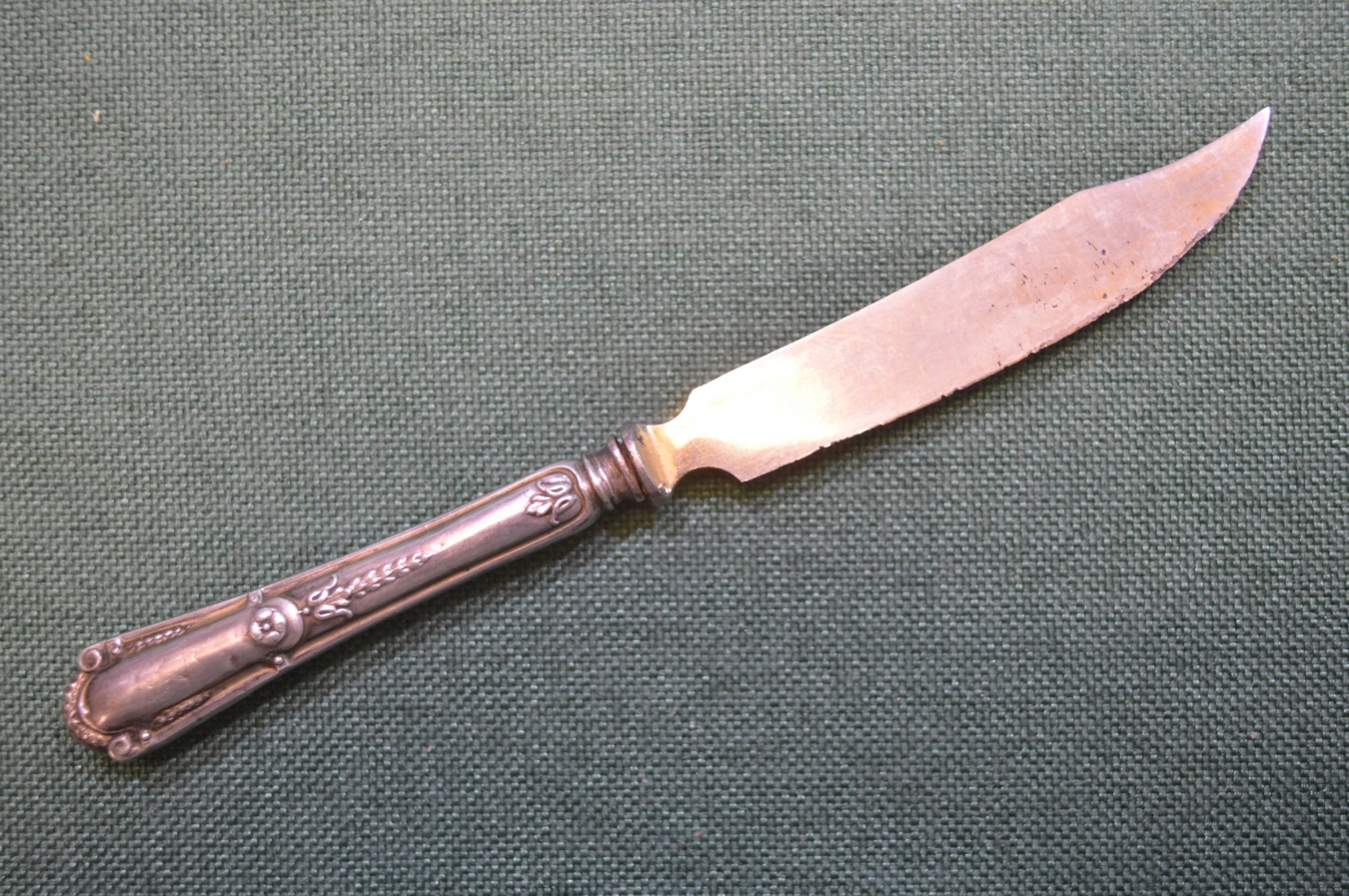 Нож десертный. Серебро 84 проба. Вензель, корона. Длина 16,5 см.