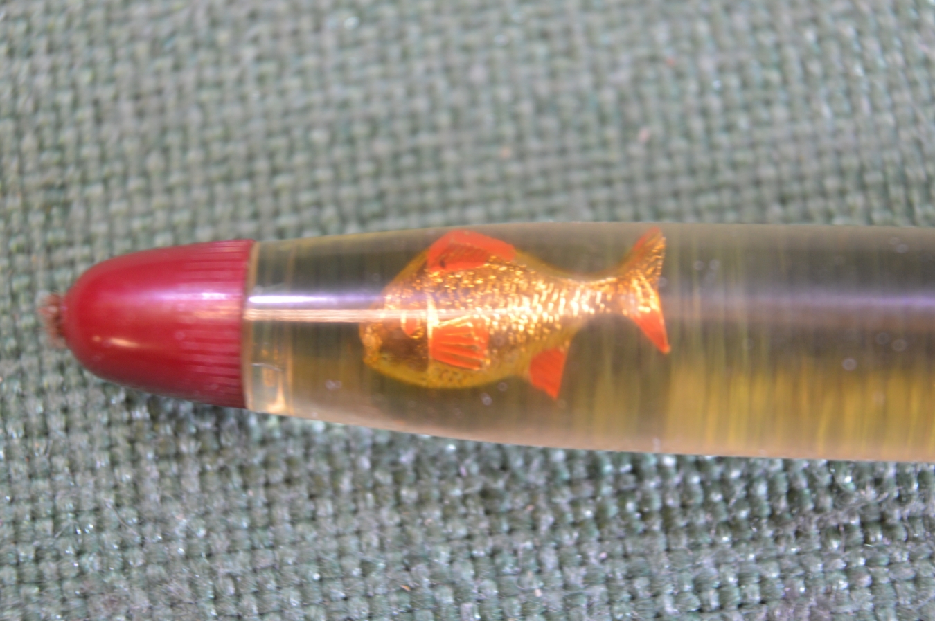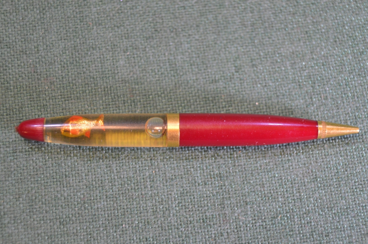 Ручка шариковая миниатюрная. Золотая рыбка. Карболит. Латунь. Европа. 1950е.