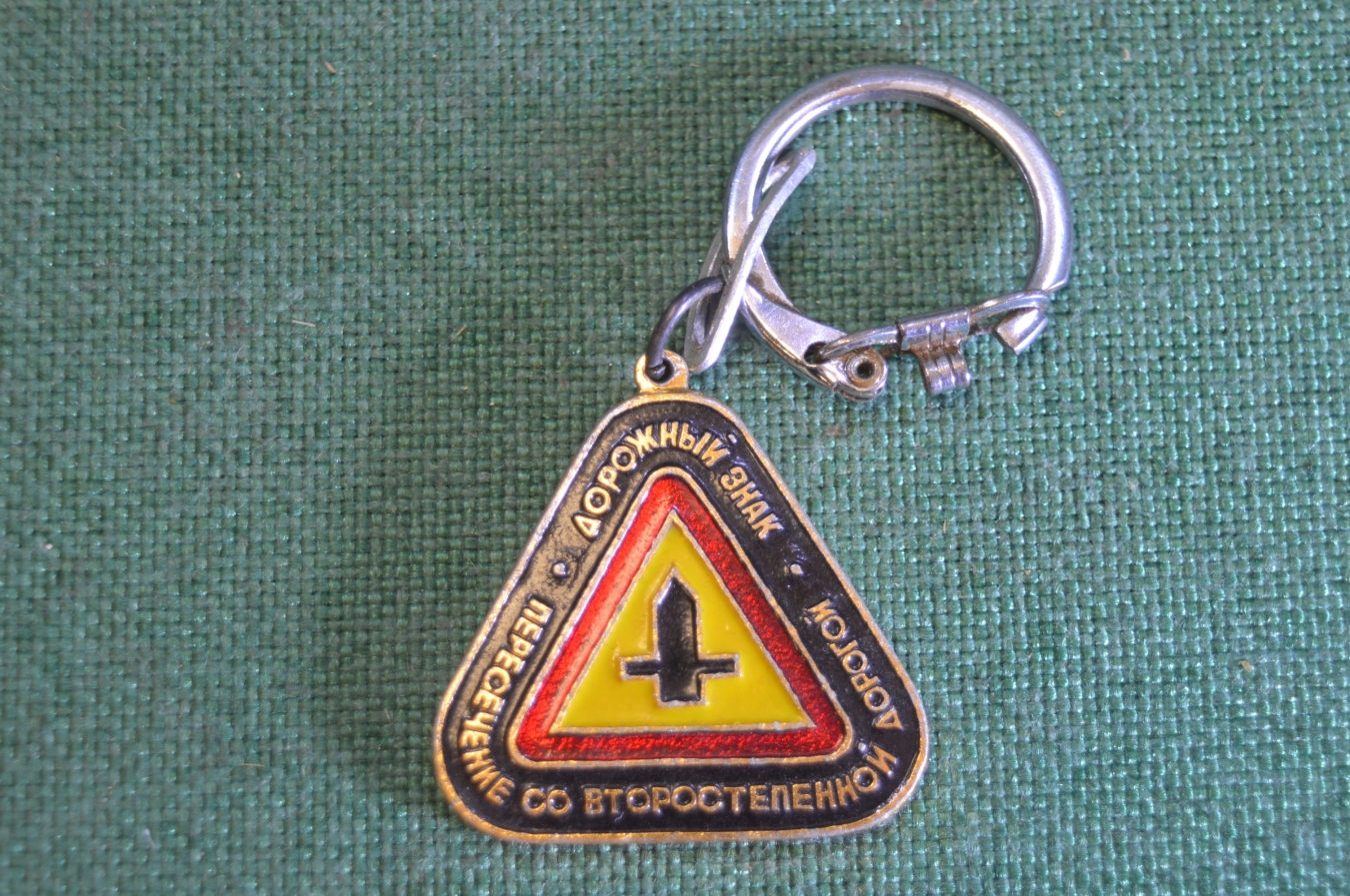 Брелок "ГАИ Госавтоинспекция Дорожный знак пересечение дороги". ПДД. СССР.