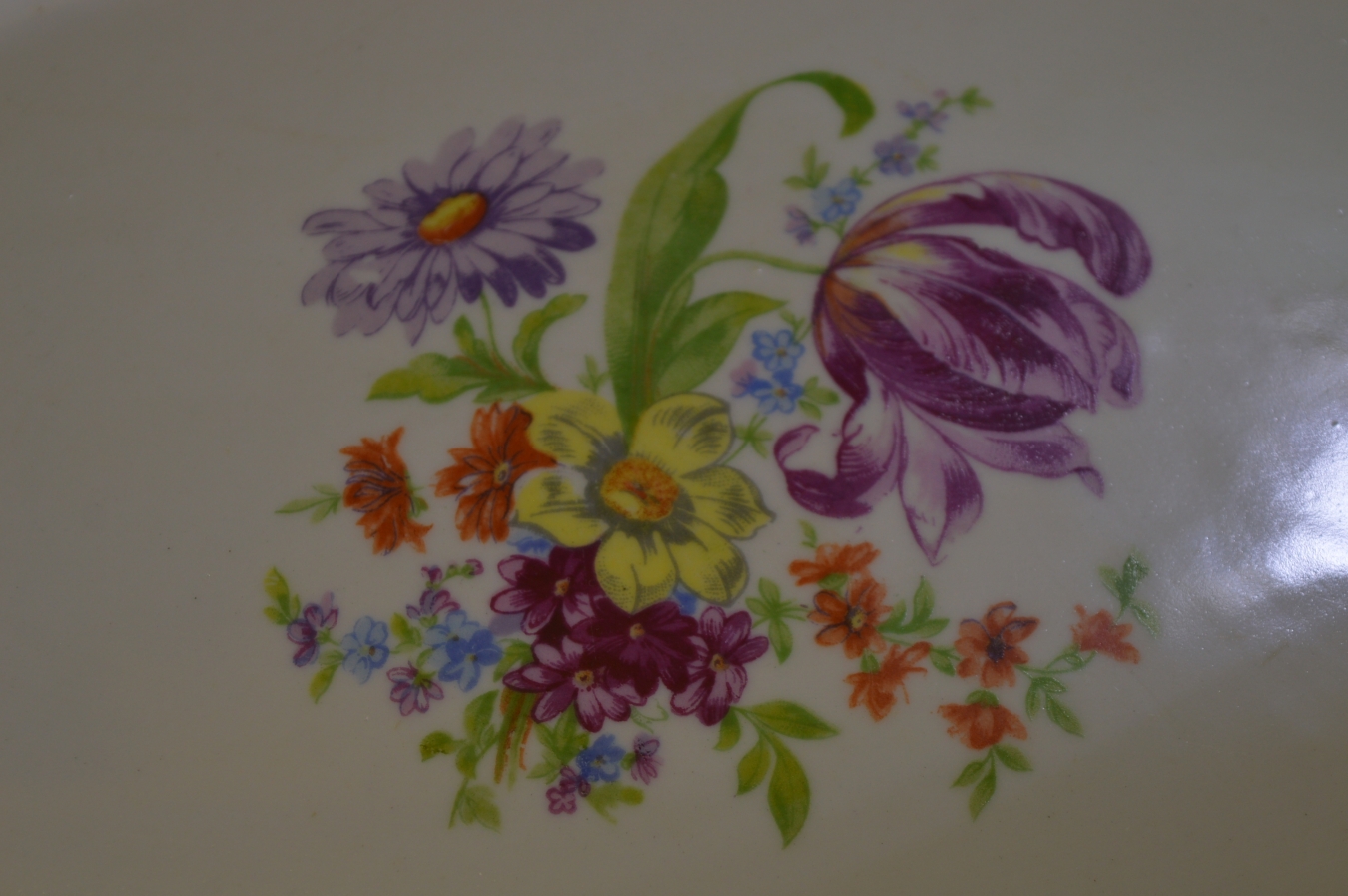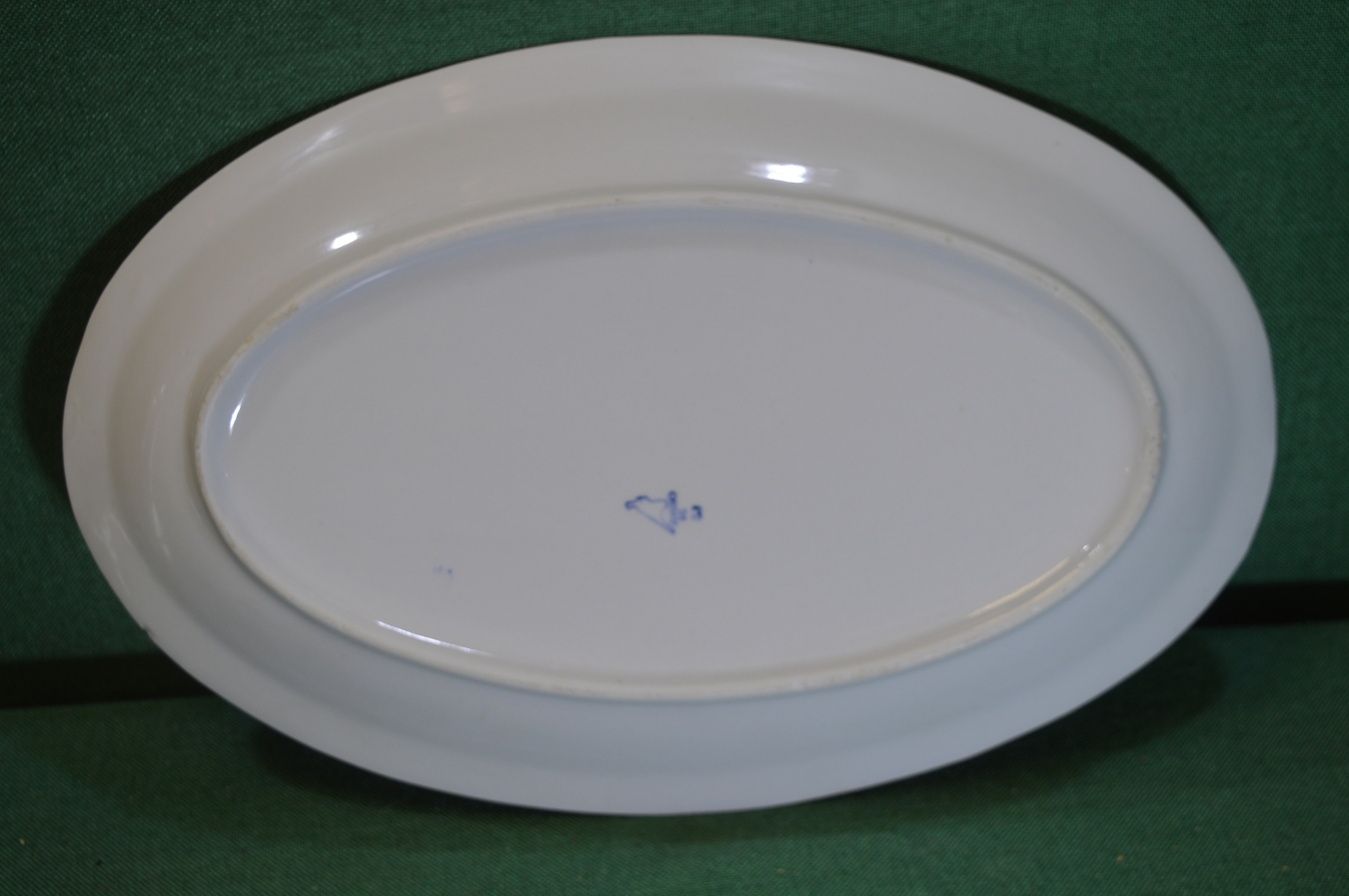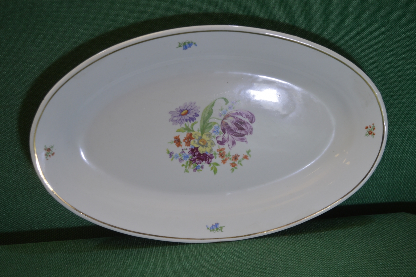 Блюдо фарфоровое овальное. Цветы. Фарфор. Дулево. СССР.