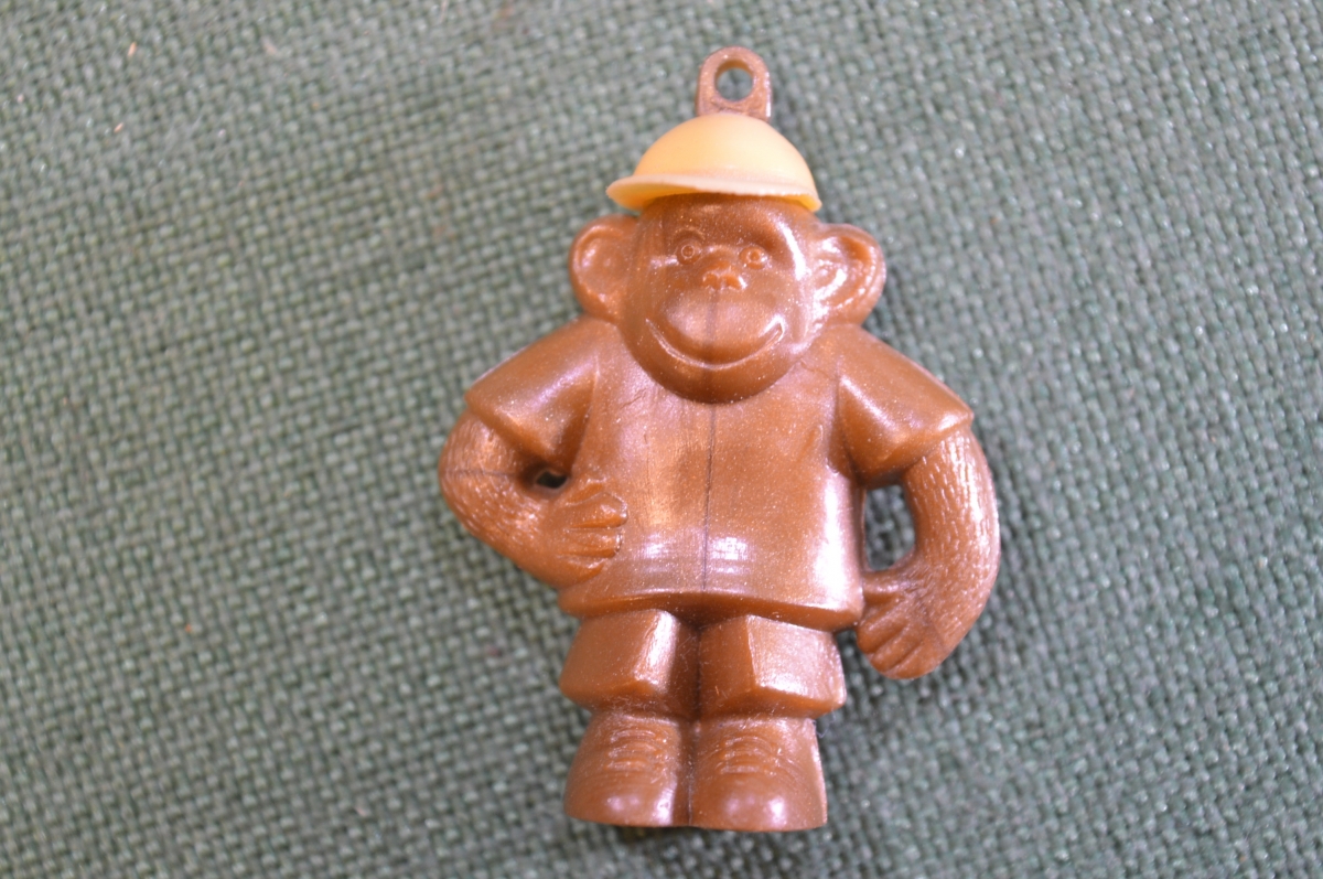 Брелок фигурка "Обезьяна обезьянка в кремовой кепке". СССР.