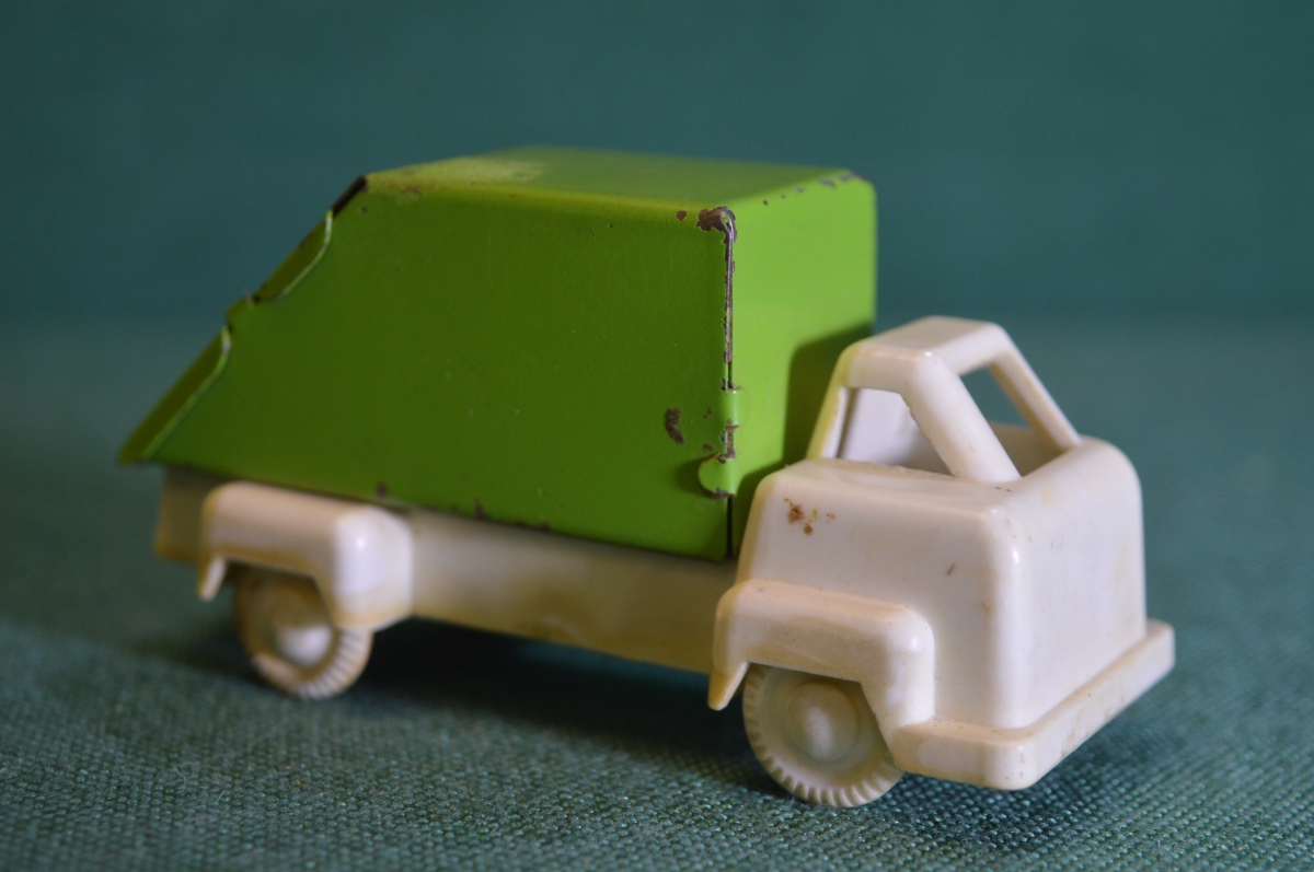 Машинка, модель игрушечная "Мусоровоз". Карболит, металл. СССР.