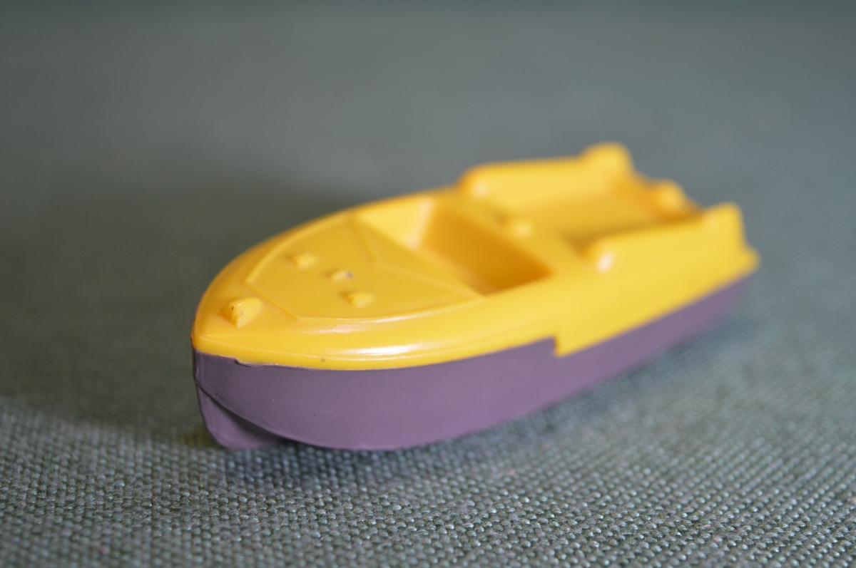 Катер пластиковый, игрушечный катерок. Кораблик. Желто серый. Пластик, СССР.