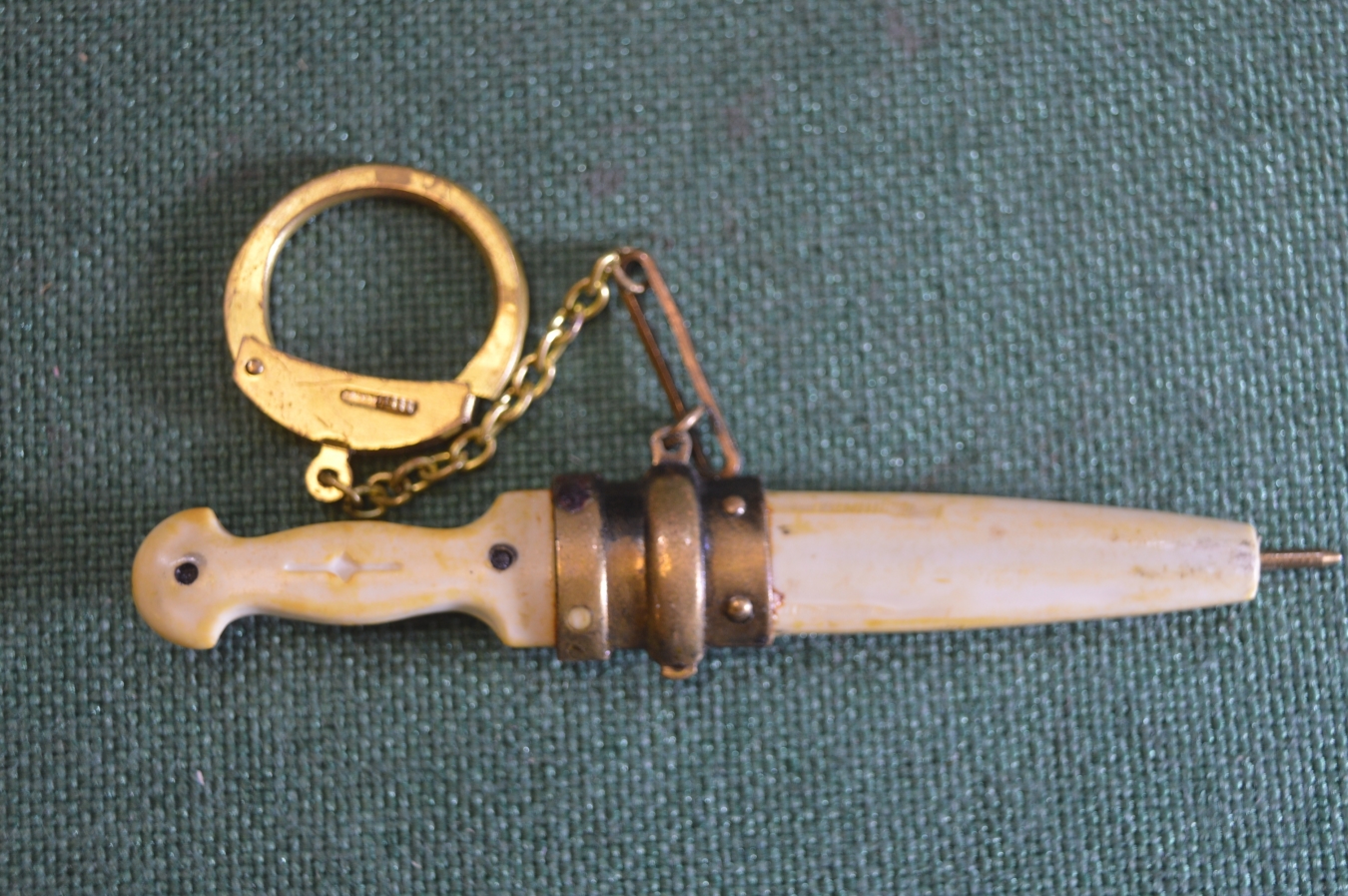 Брелок для ключей "Ручка шариковая Кинжал нож меч". Кость. Латунь. СССР.