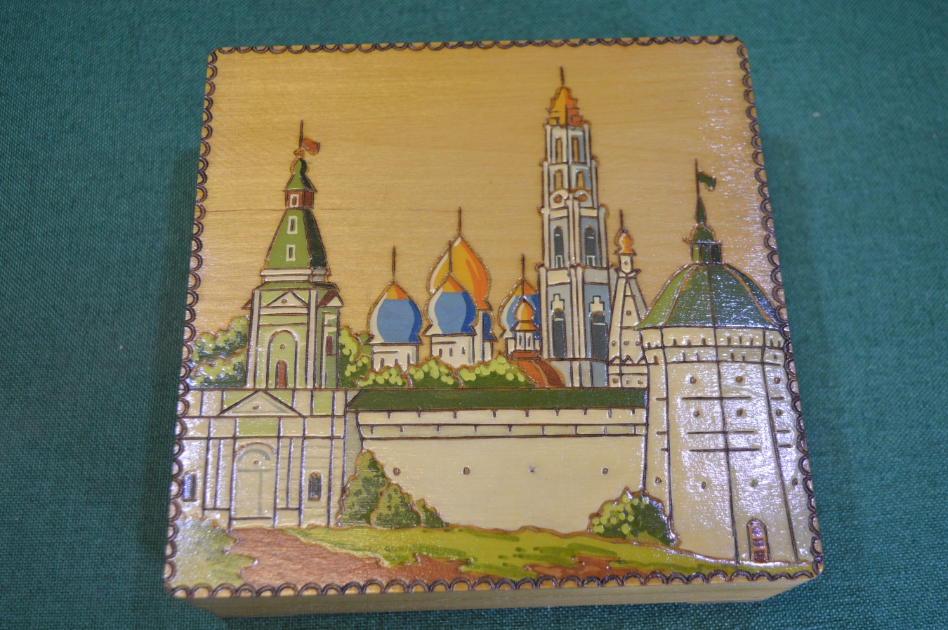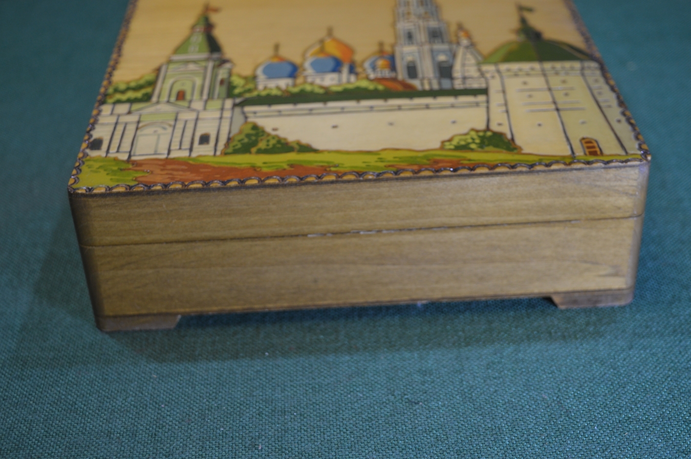 Шкатулка деревянная "Кремль". Резьба. Роспись. СССР.