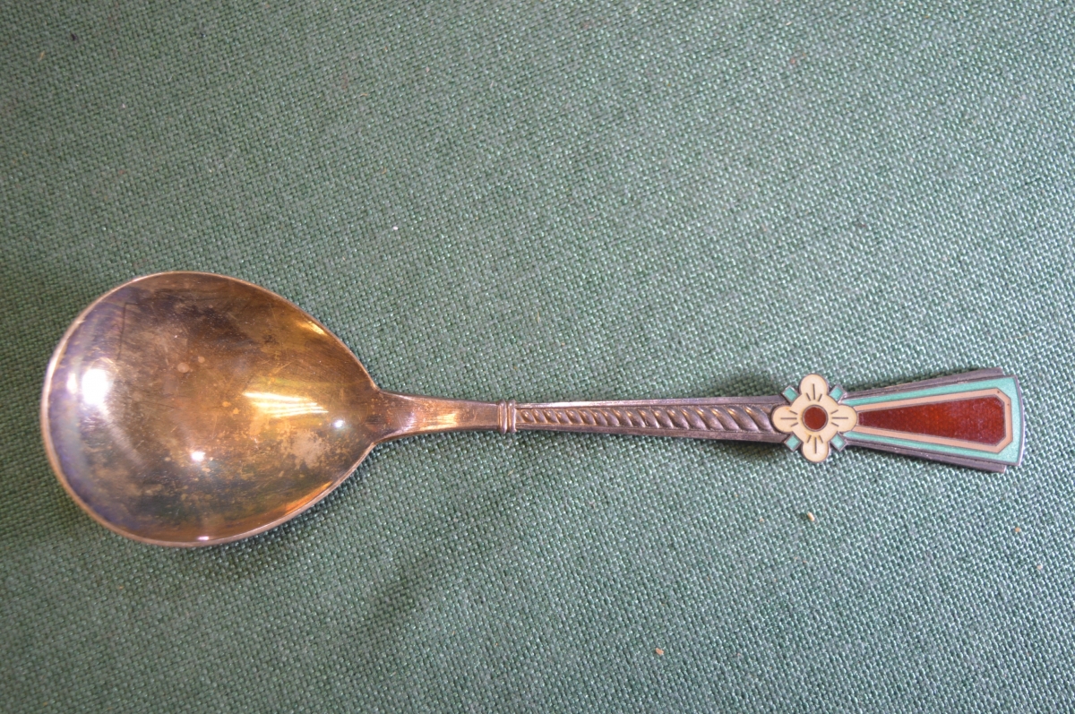Ложка для меда варенья. Серебро 916 проба. Эмаль. Прибалтика. СССР.