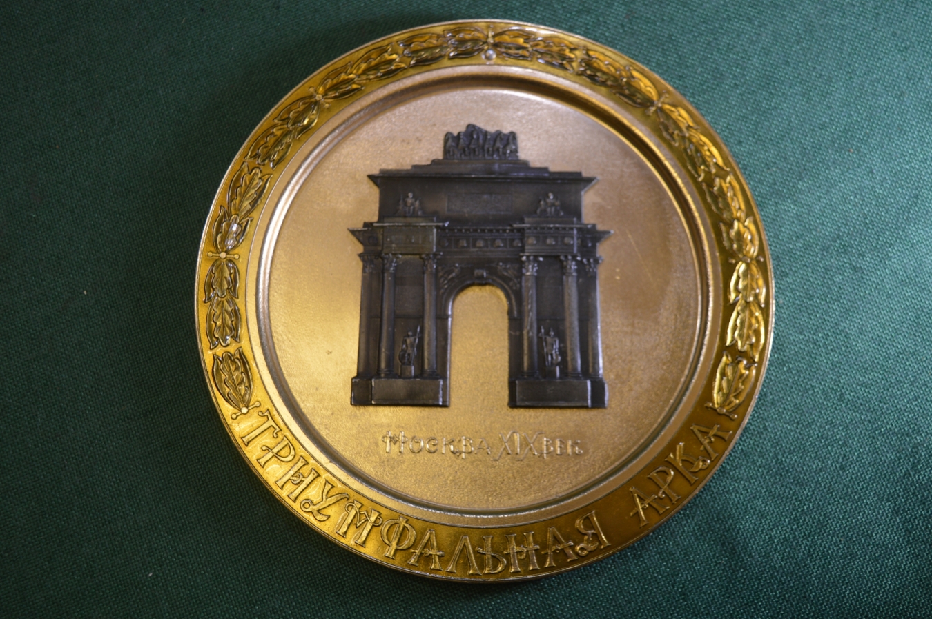 Тарелка настенная "Москва Триумфальная Арка". Олимпиада 1980. Металл. СССР.