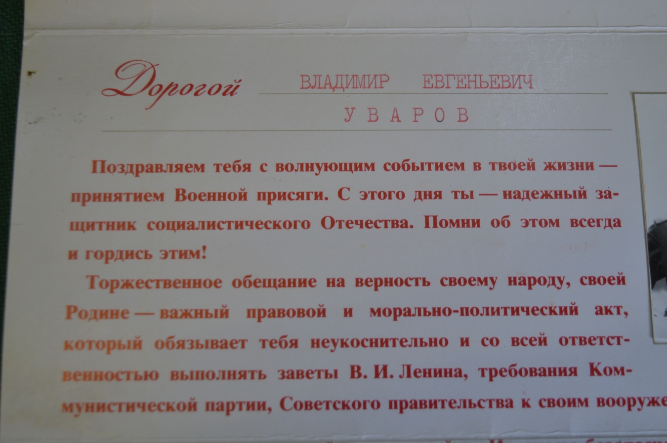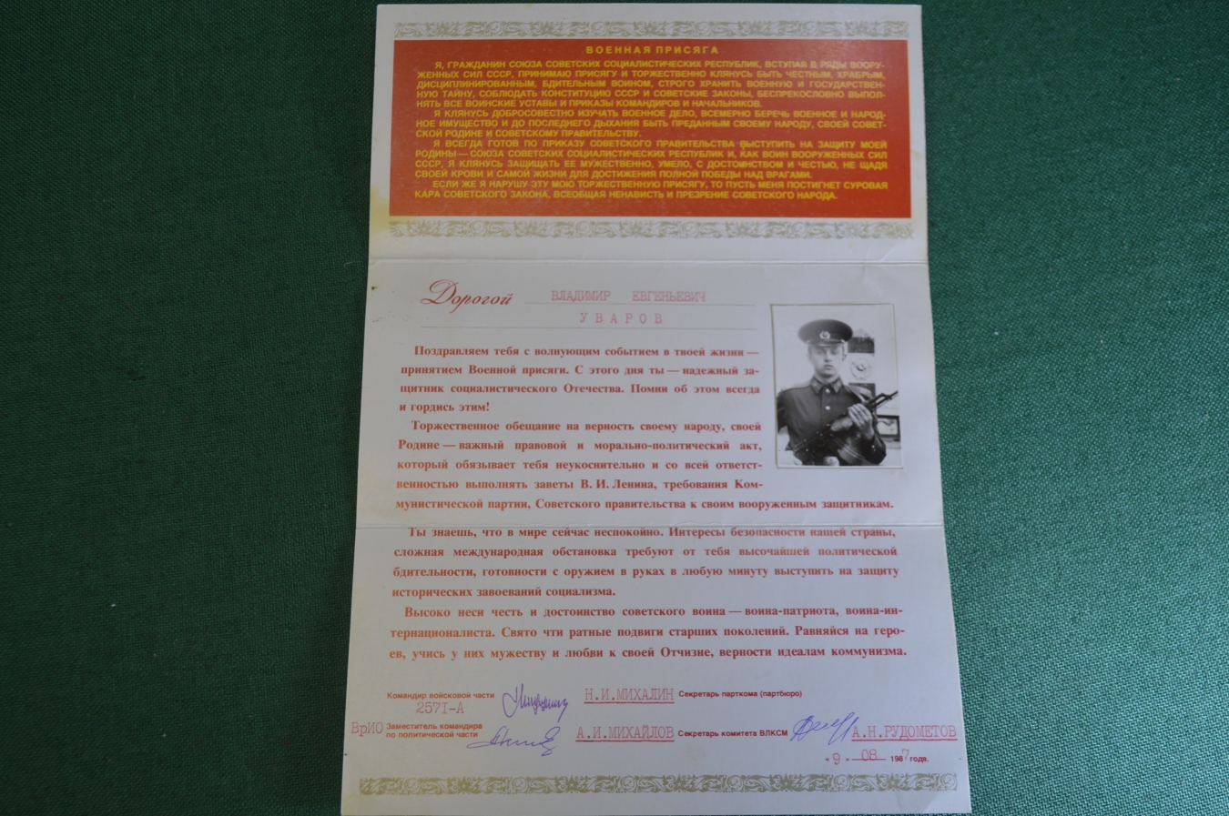 Документ "Присяга Пограничника". Пограничные войска КГБ СССР. 1987 год.