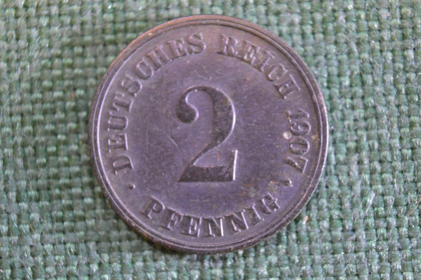 Монета 2 пфеннига 1907 года. Германия. Империя.