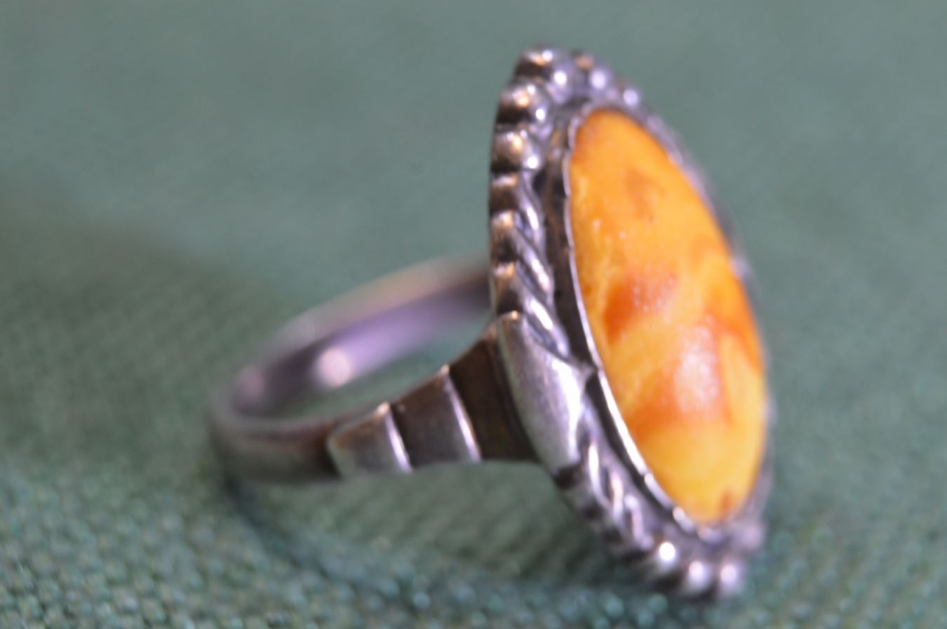 Кольцо женское. Серебро 875 проба голова. Янтарь. Рига. СССР.