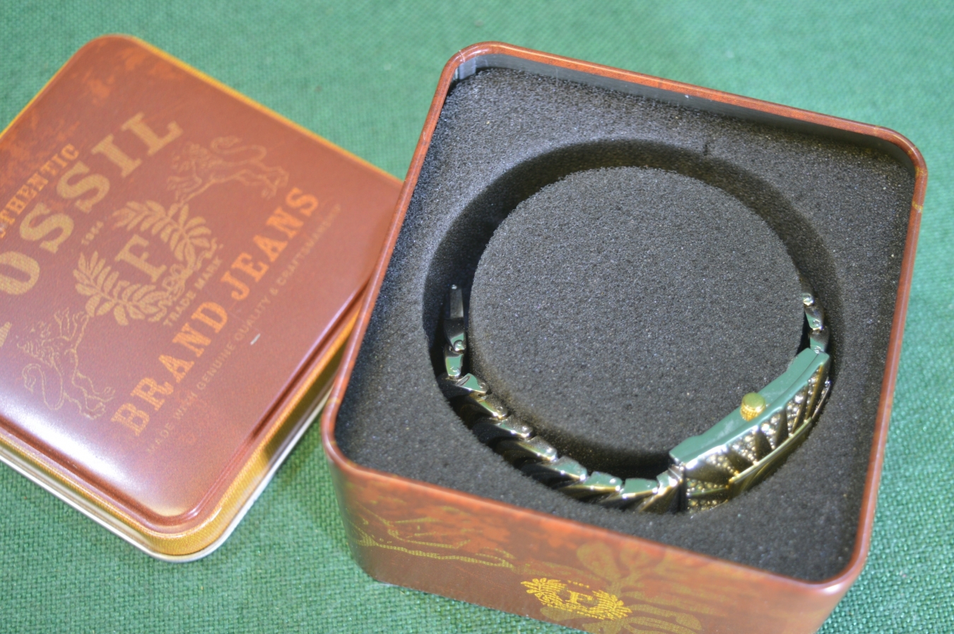 Часы Fossil, женские, кварцевые. Браслет, коробка. Стразы.