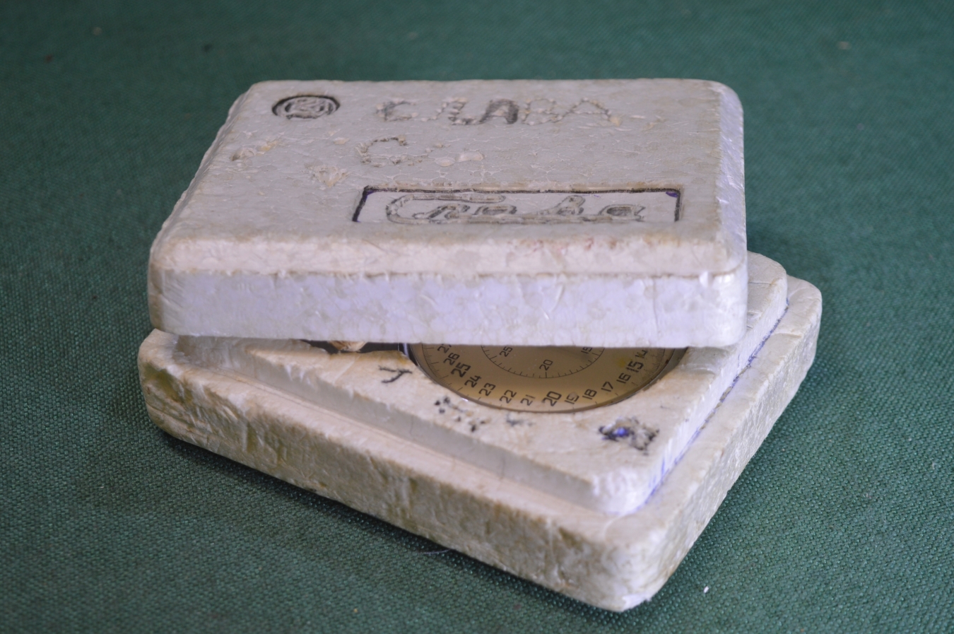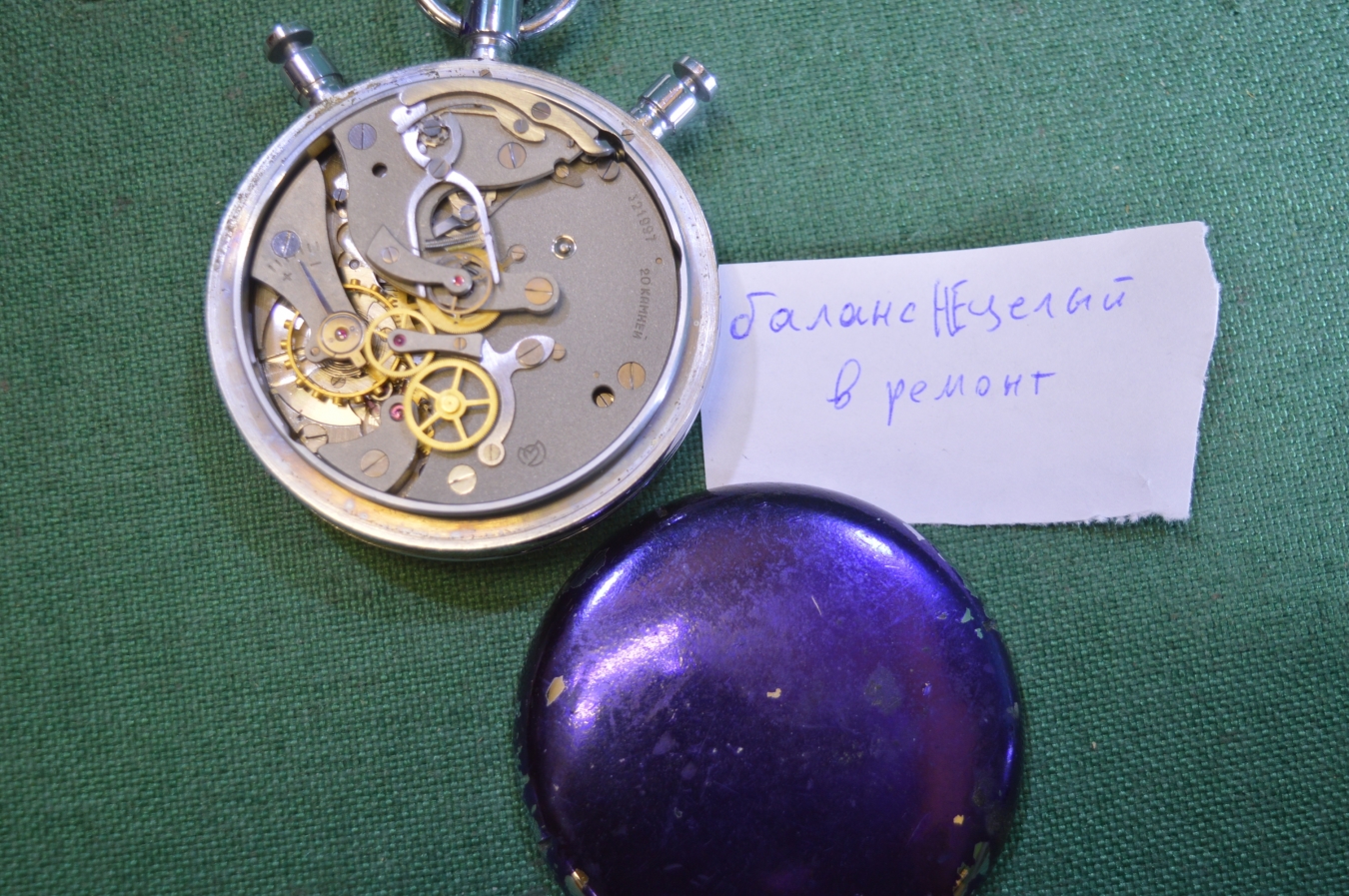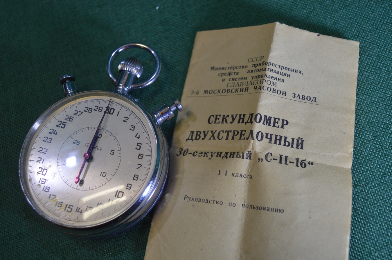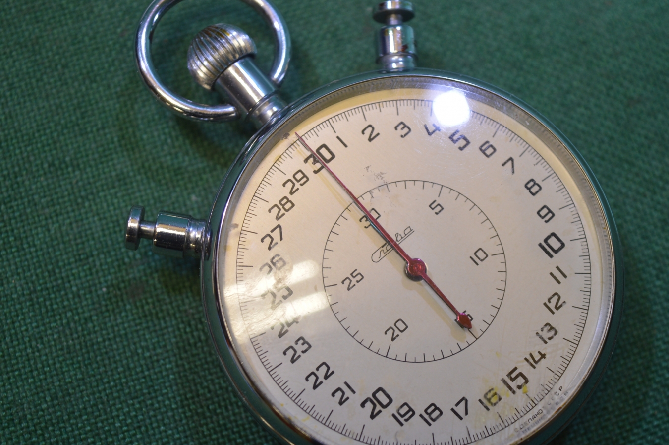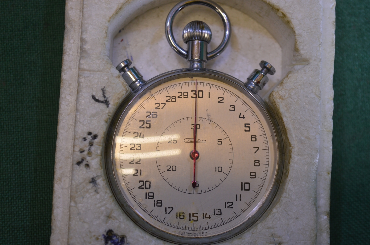 Секундомер "Слава", двустрелочный, 20 камней. Большой. В ремонт.