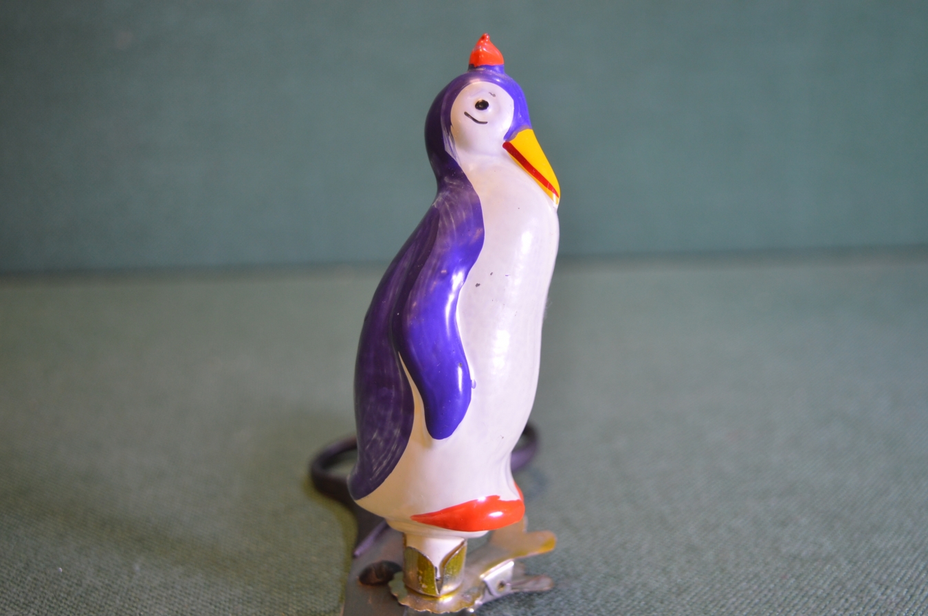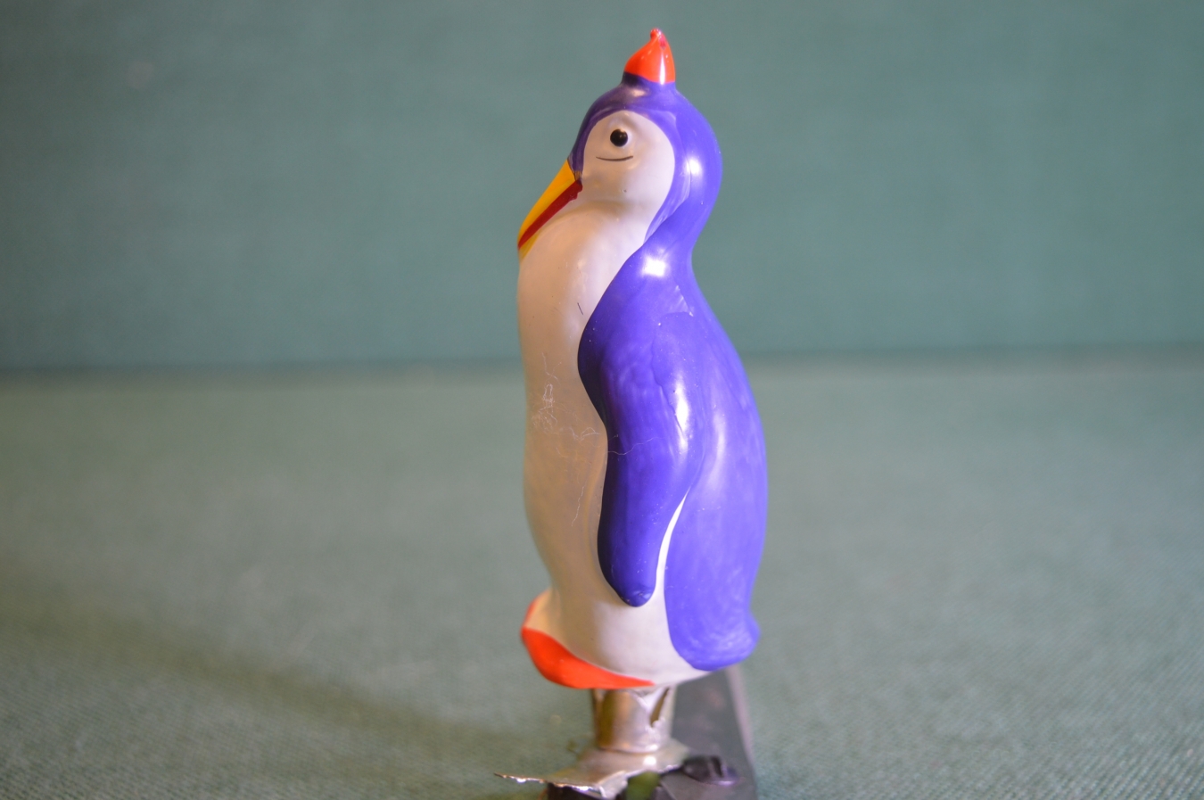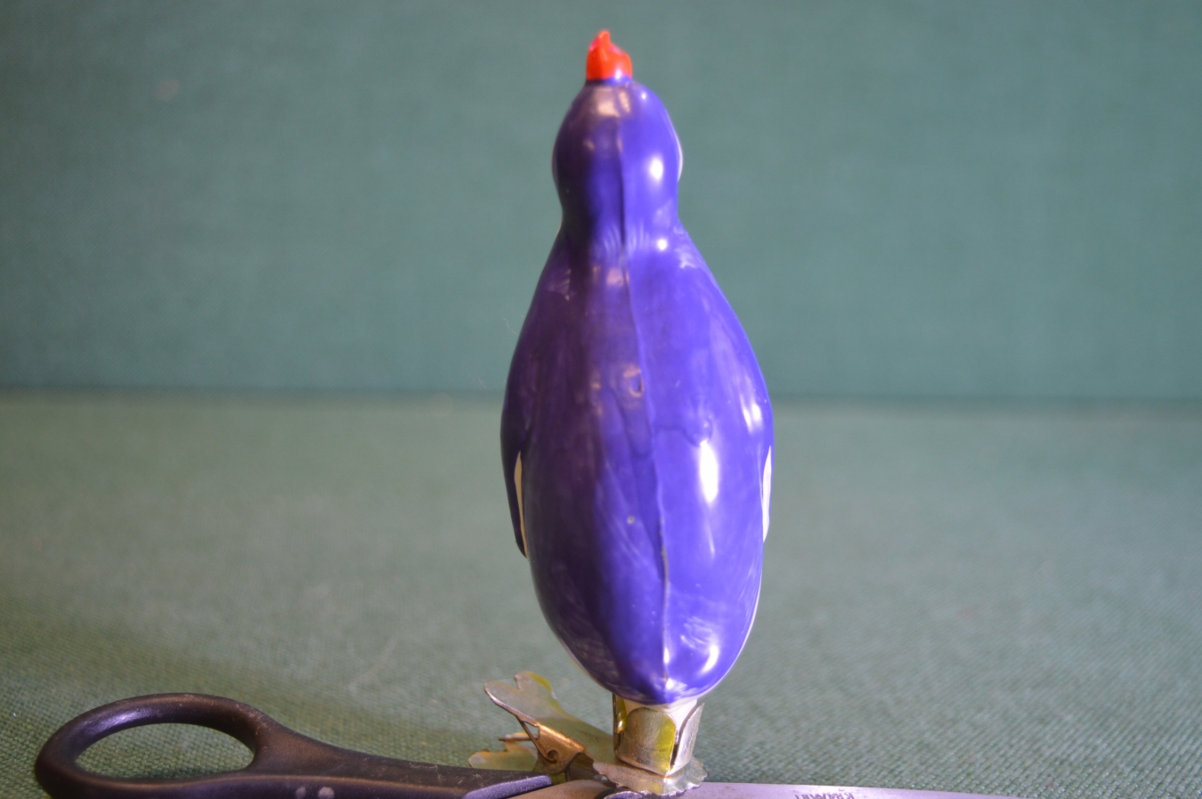 Игрушка елочная стеклянная "Пингвин, пингвиненок". Стекло, прищепка. #7. СССР.