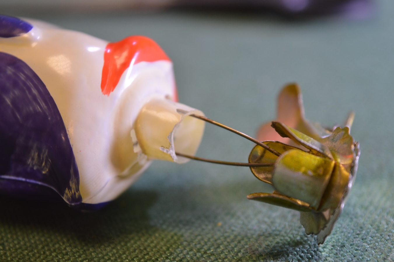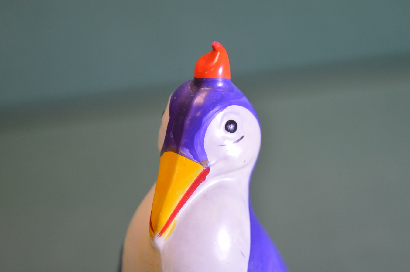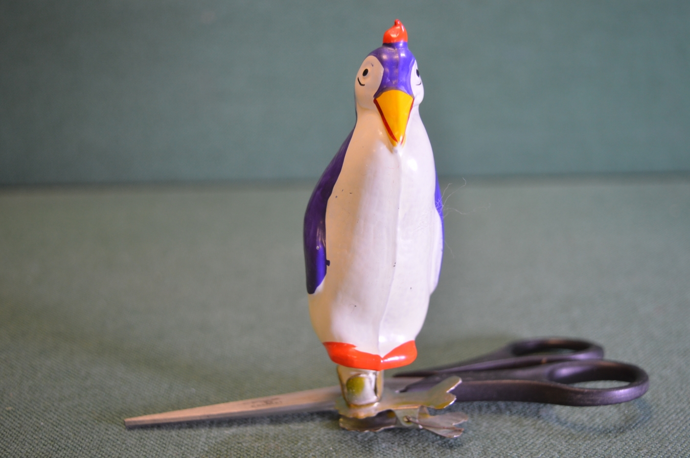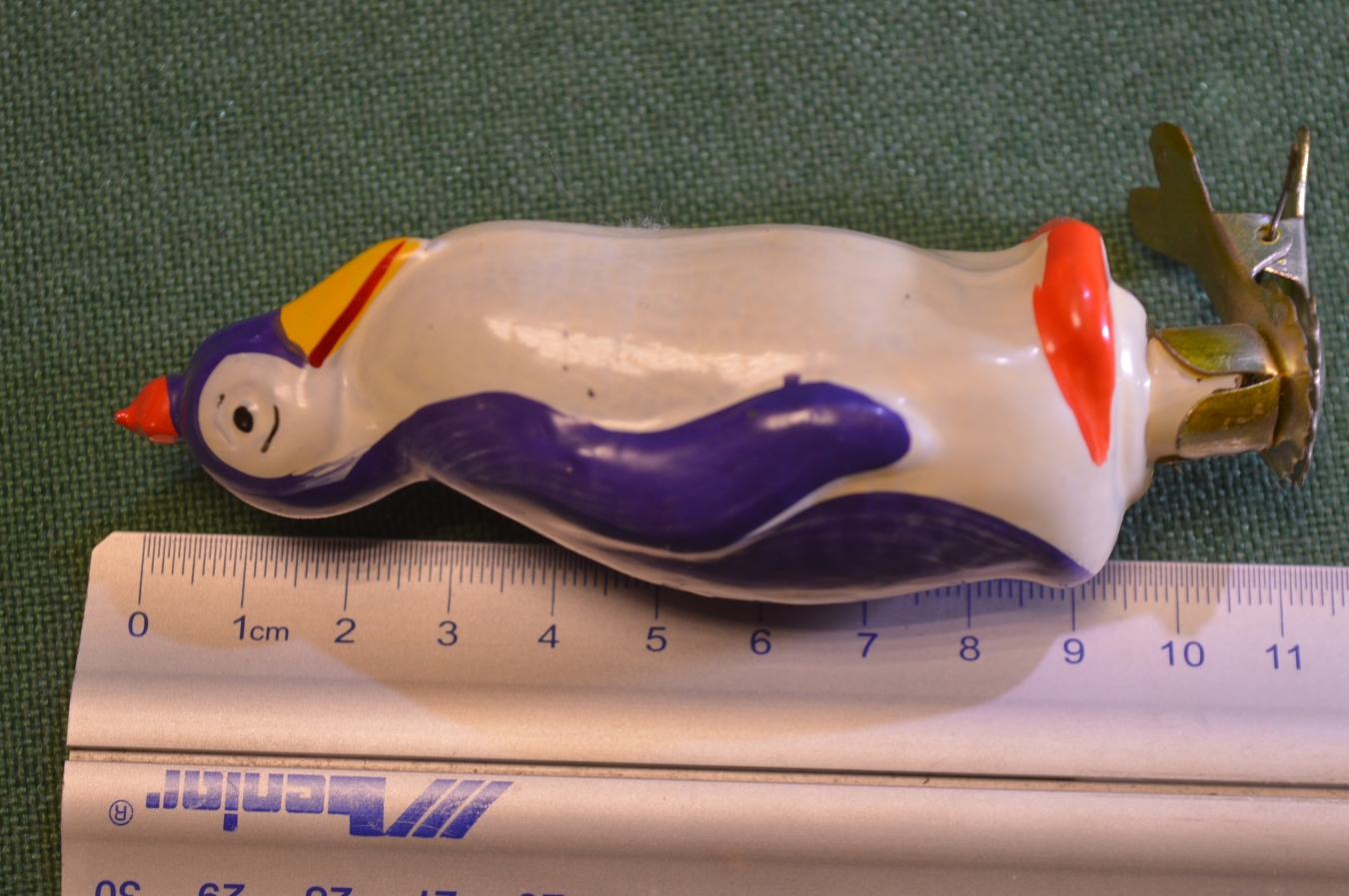Игрушка елочная стеклянная "Пингвин, пингвиненок". Стекло, прищепка. #7. СССР.