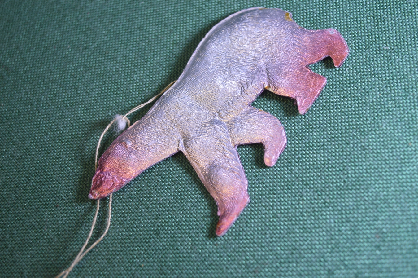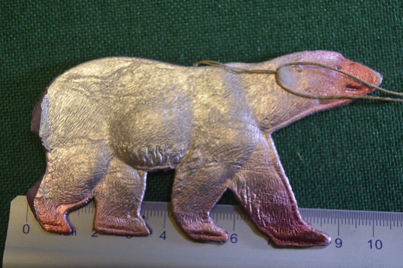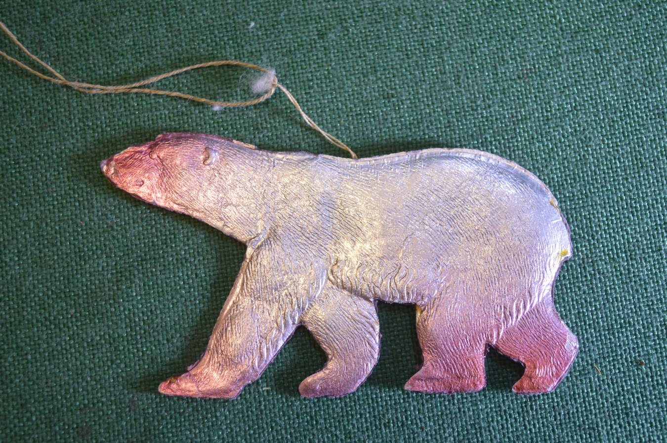 Елочная игрушка "Белый медведь". Картонаж, фольга. СССР