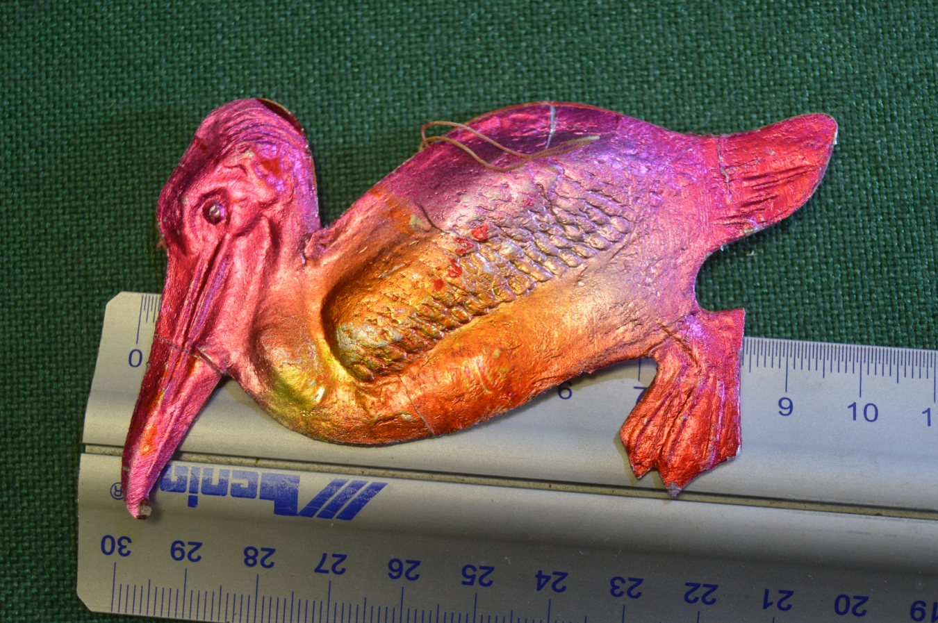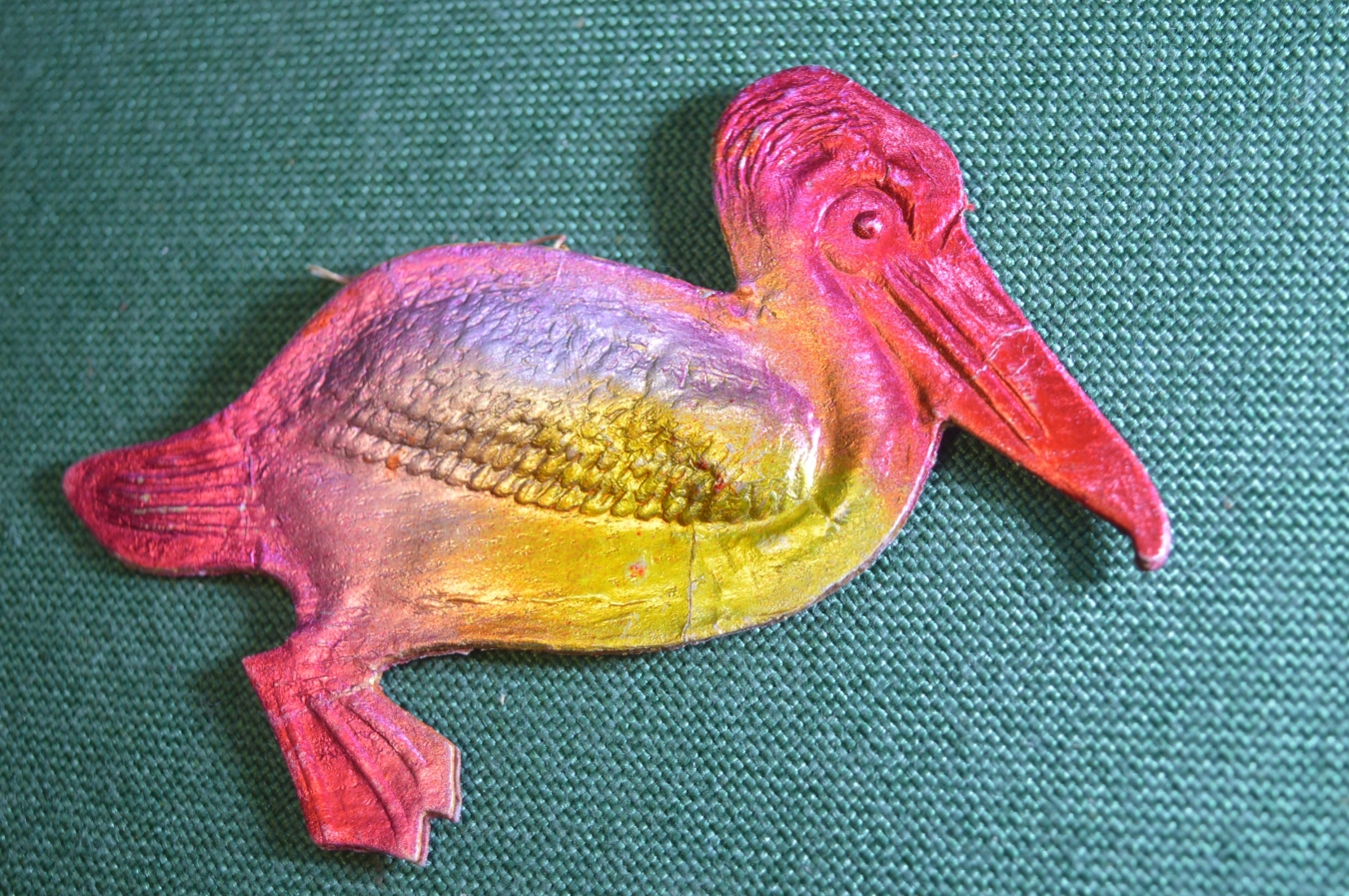 Елочная игрушка "Птица Пеликан". Картонаж, фольга. СССР