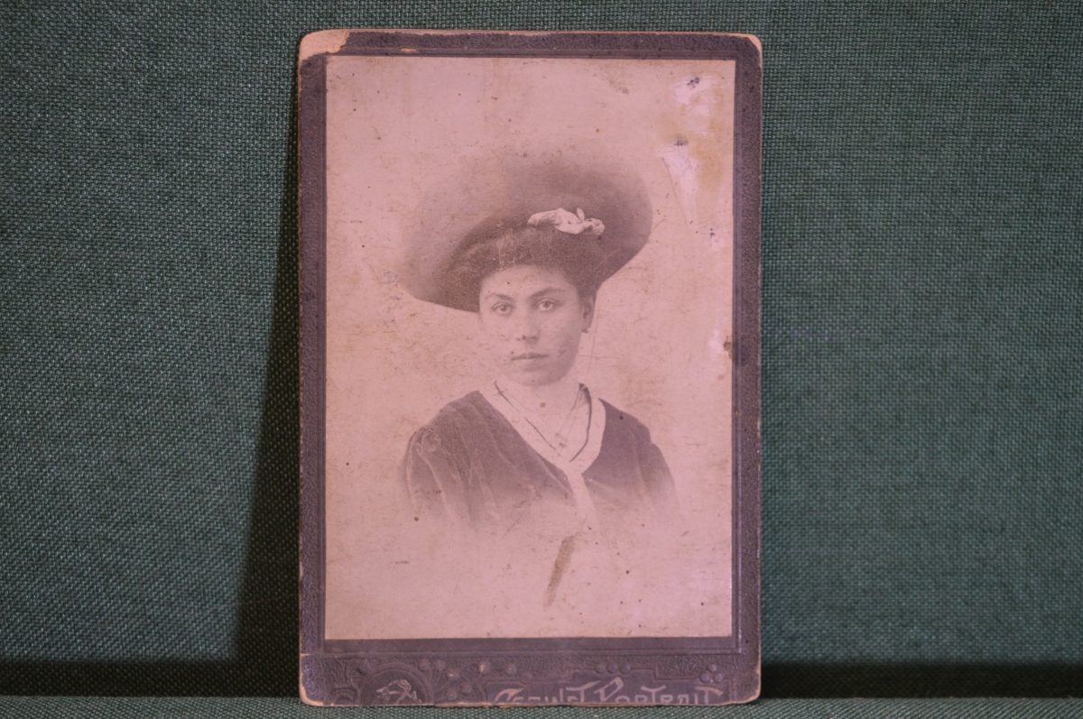 Фотография старинная "Девушка в большой шляпе". Visit Portrait.