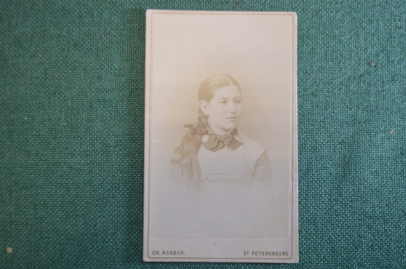 Фотография старинная "Девушка с косой и шейным платком". Ch. Roesch, Санкт-Петербург.