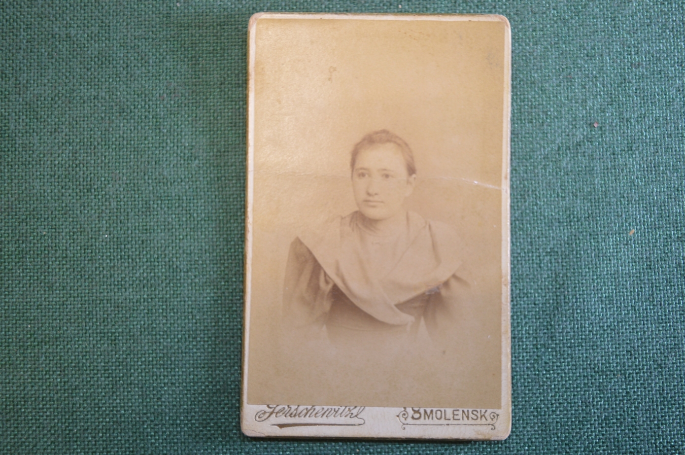 Фотография старинная "Девушка в платье с отворотами". Гершевич, Смоленск.