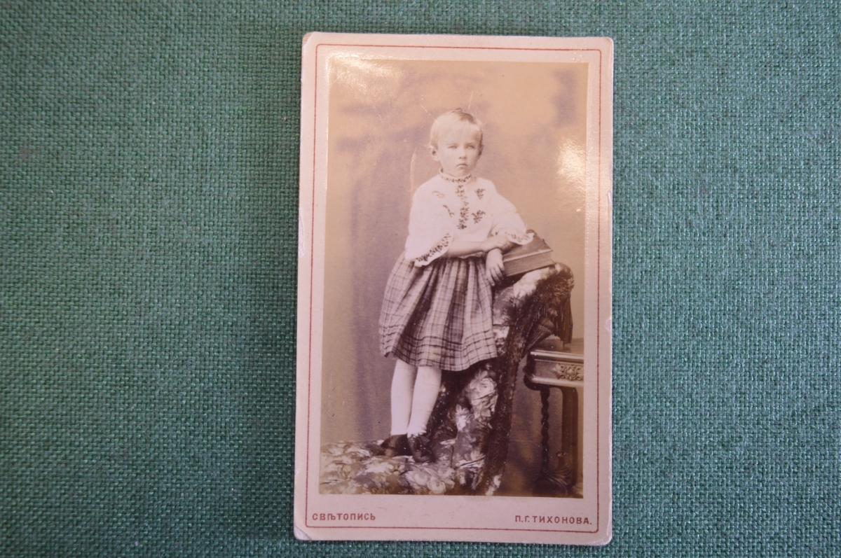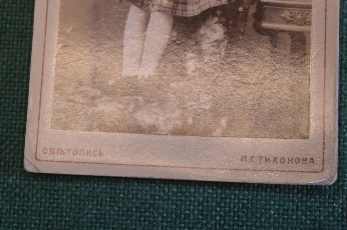 Фотография старинная "Девочка в клетчатой юбке". Светопись Тихонова. Вятка.