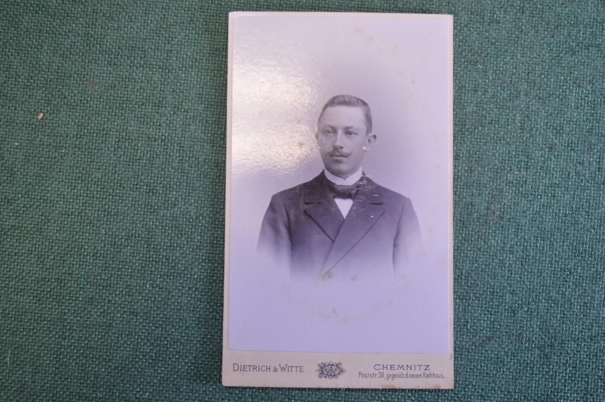 Фотография старинная "Мужчина в костюме". Dietrich & Witte. Chemnitz.