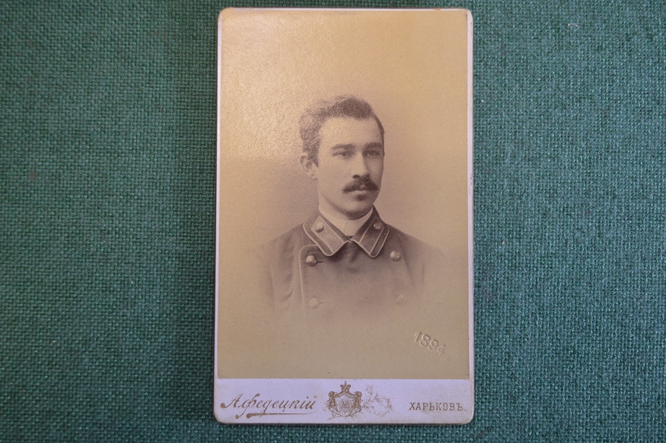 Фотография старинная "Мужчина в форменной одежде". Афедецкий, Харьков. 1894 год.