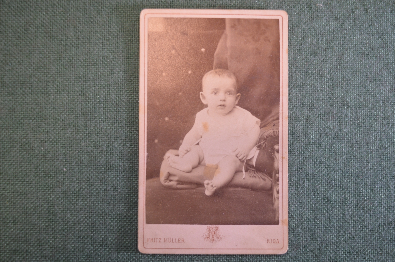 Фотография старинная "Лопоухий малыш". Fritz Muller. Riga, Рига.
