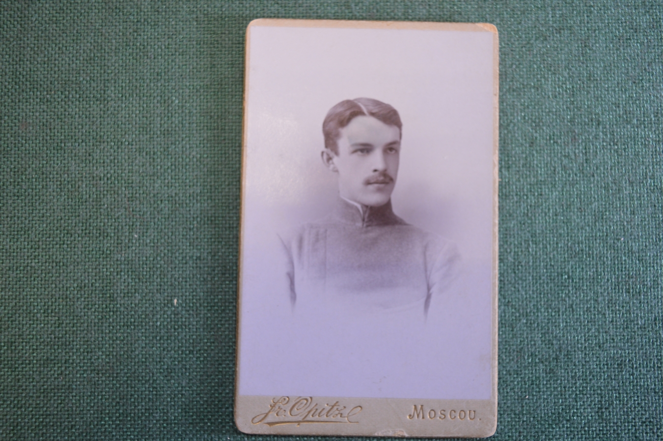 Фотография старинная "Молодой мужчина с усами". Опитц, Opitz. Москва.